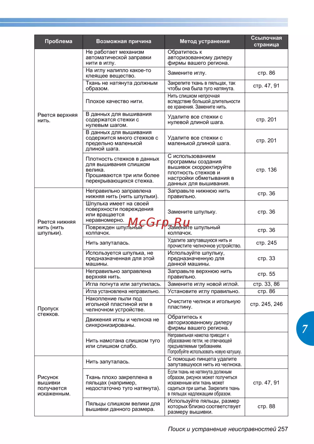 Brother PR 655E ENTREPRENEUR (PR655E) — поиск и устранение неисправностей в швейных машинах [259/280]