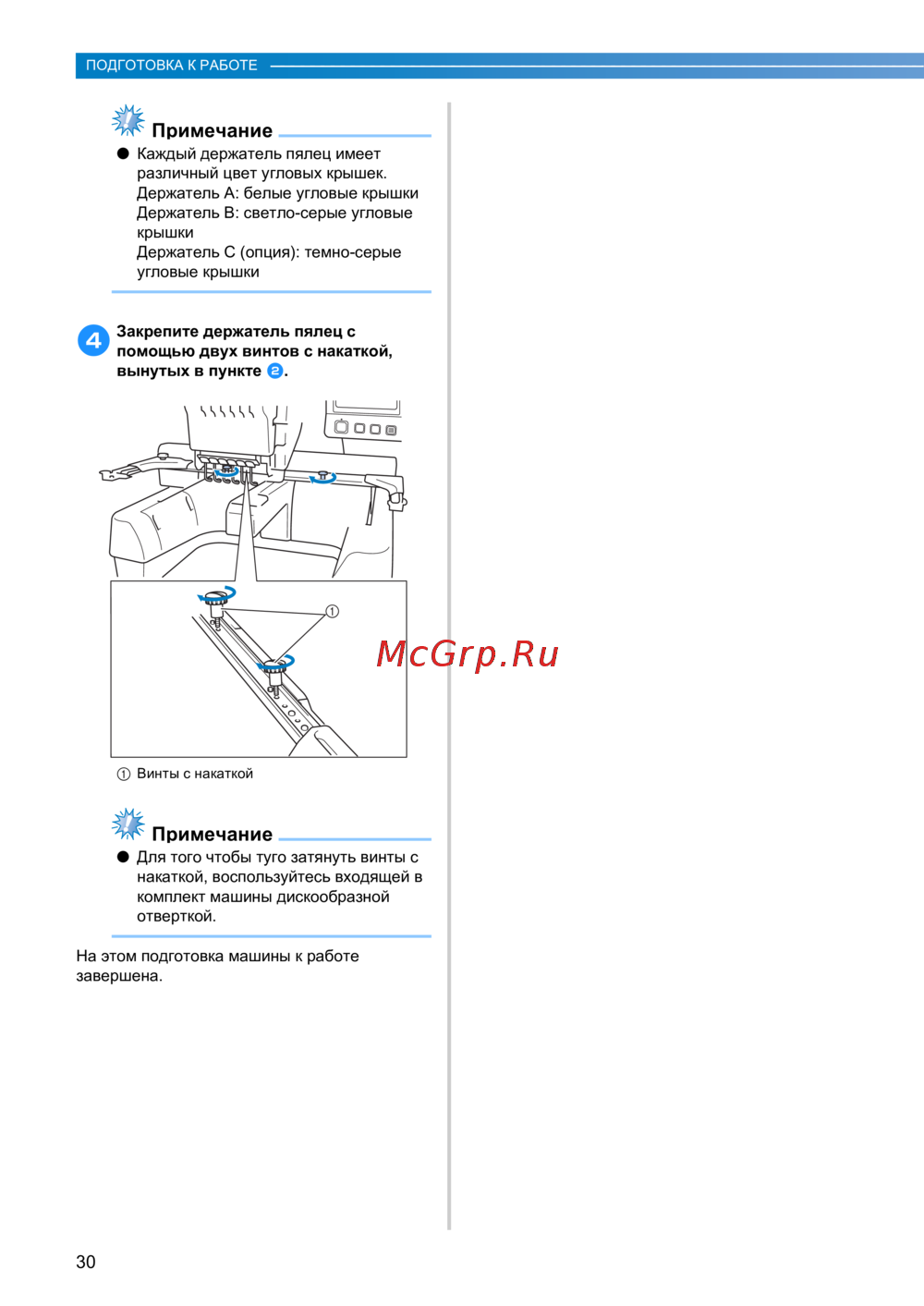 Узнайте, как правильно подготовить держатели пялец к работе. Следуйте пошаговым инструкциям по установке и затяжке винтов для надежной работы.