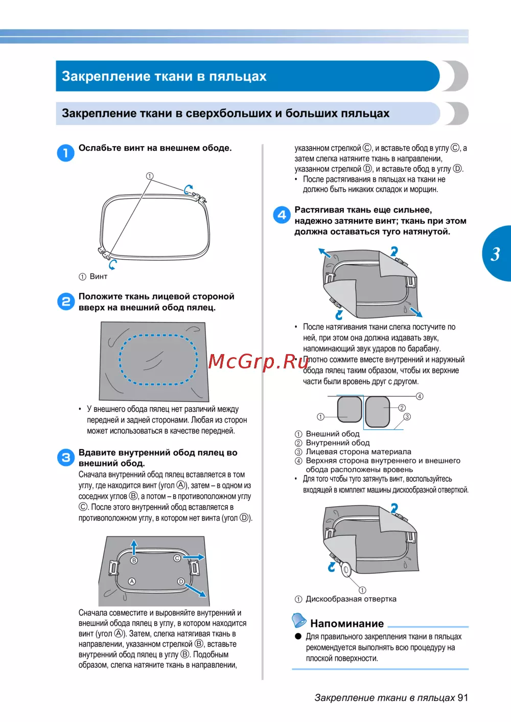Brother PR 655E ENTREPRENEUR (PR655E) — как правильно закрепить ткань в пяльцах: пошаговое руководство [93/280]
