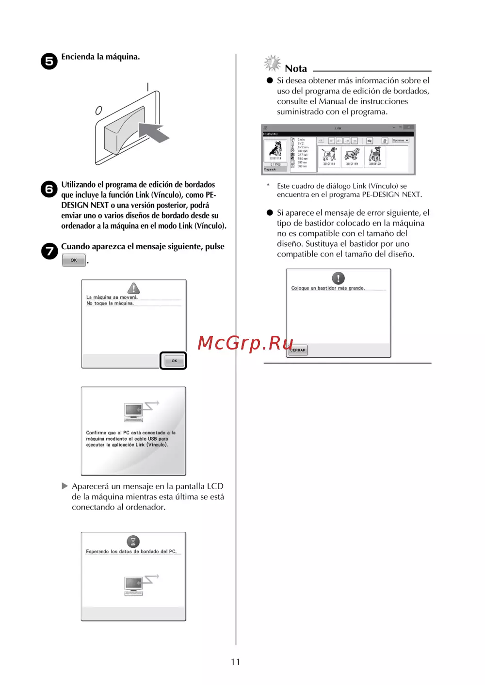 Aprenda a utilizar la función Link para enviar diseños de bordado desde su ordenador a la máquina. Siga los pasos y resuelva errores comunes con facilidad.
