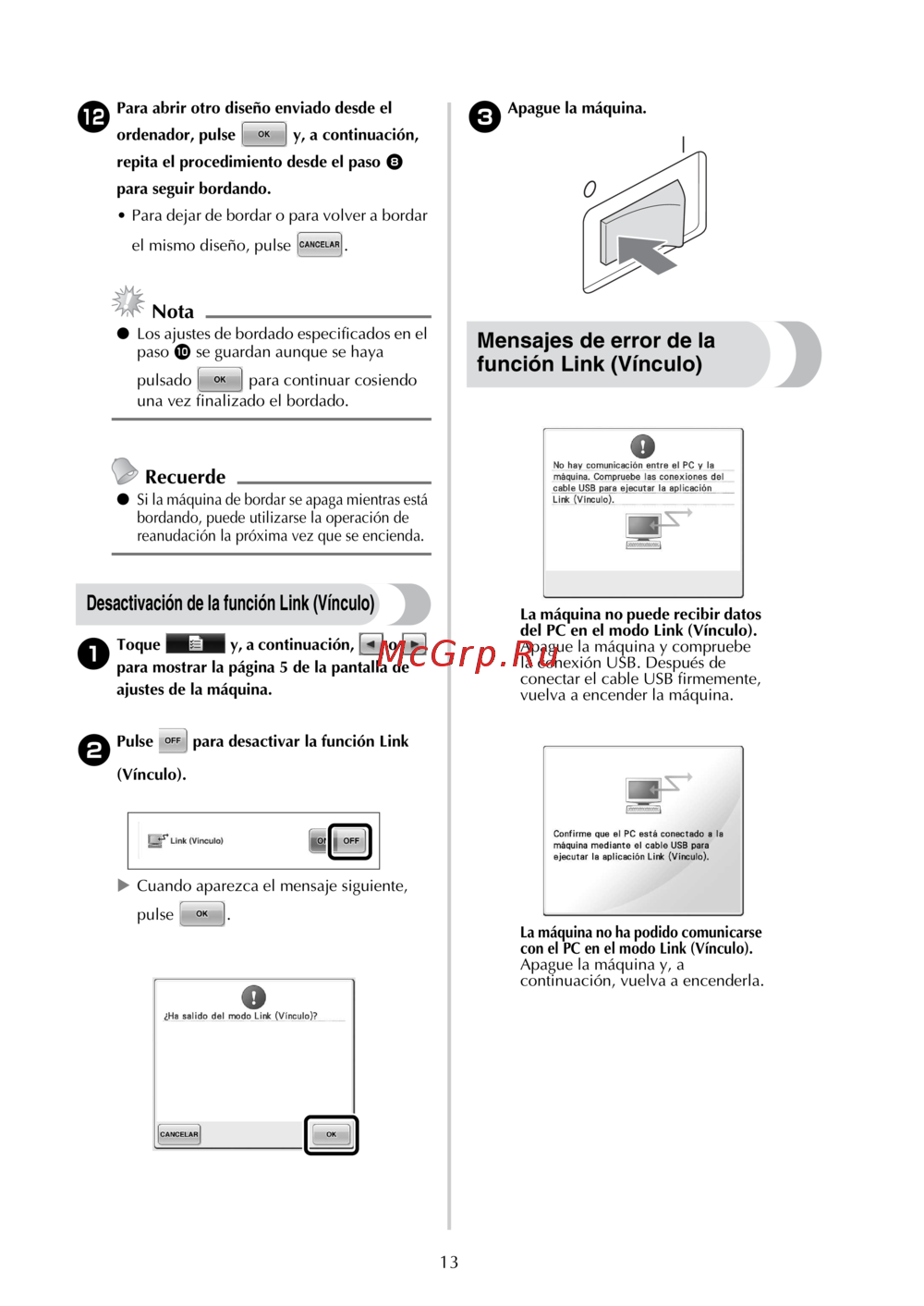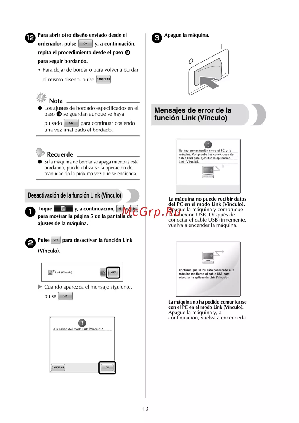 - Como enviar desenhos de bordado de um computador para uma máquina função link conexão p.118