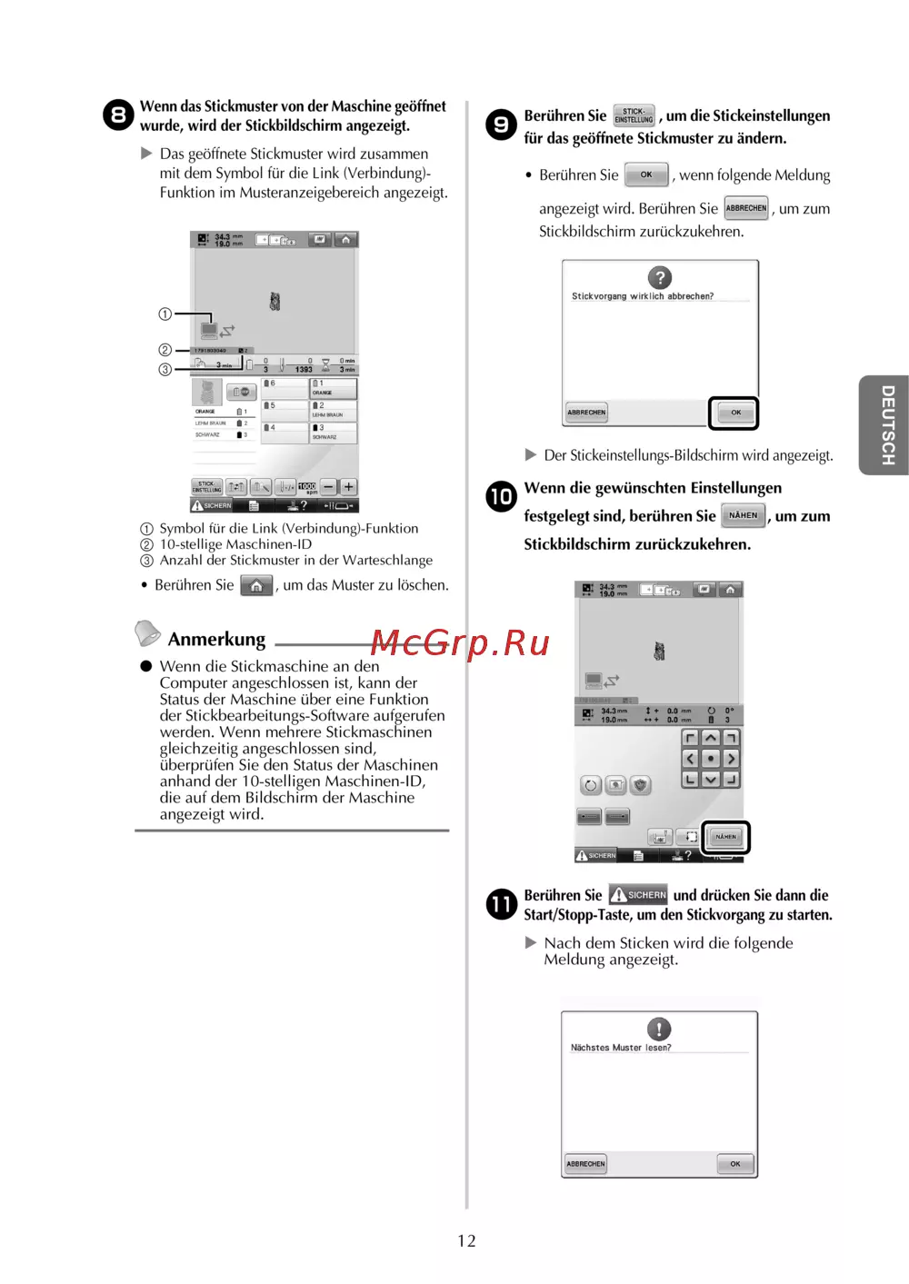 - Stickmuster vom computer an die maschine senden link verbindung funktion p.28