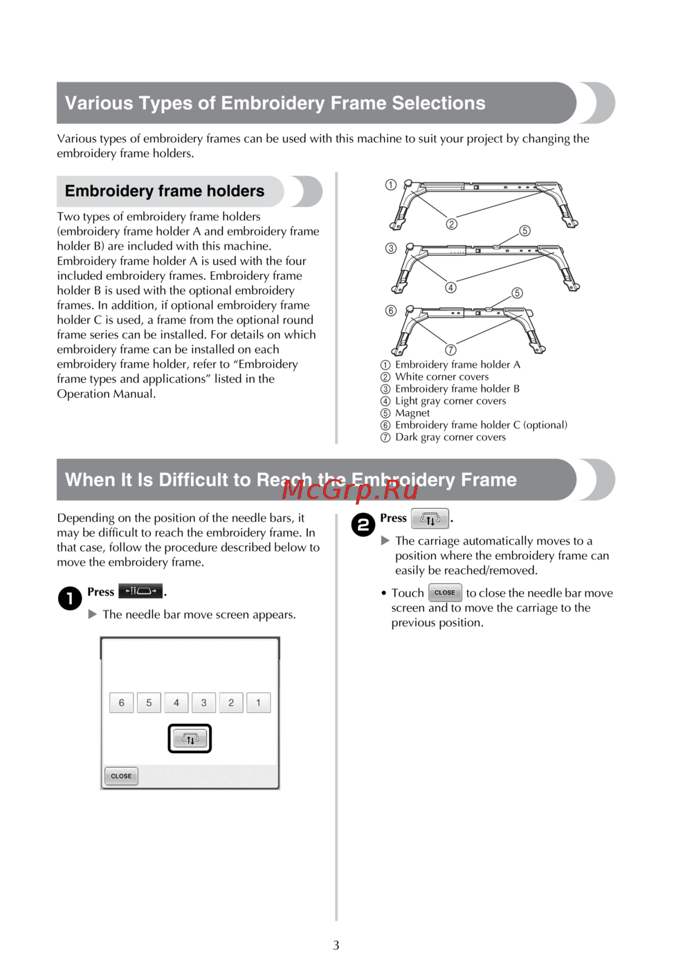 Brother PR 655E ENTREPRENEUR (PR655E) [4/148] When it is difficult to reach the embroidery frame
