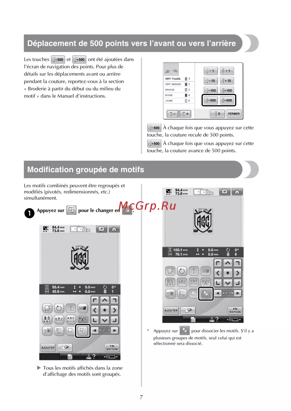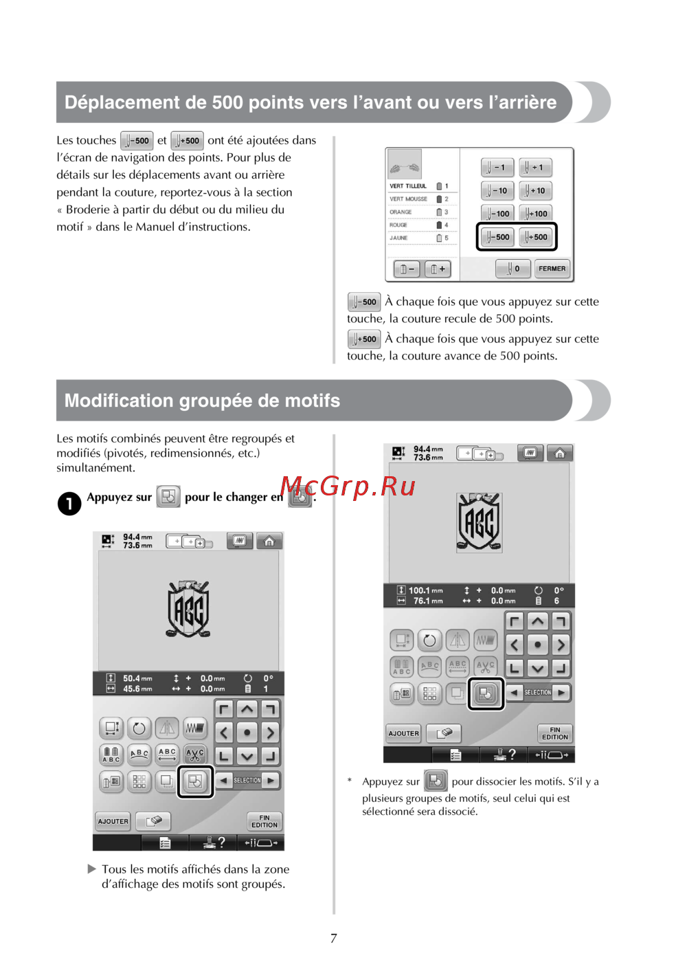 Brother PR 655E ENTREPRENEUR (PR655E) — guide sur les déplacements et modifications de motifs en couture [44/148]