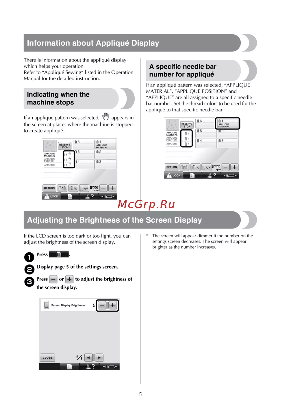 Brother PR 655E ENTREPRENEUR (PR655E) [6/148] Information about appliqué display