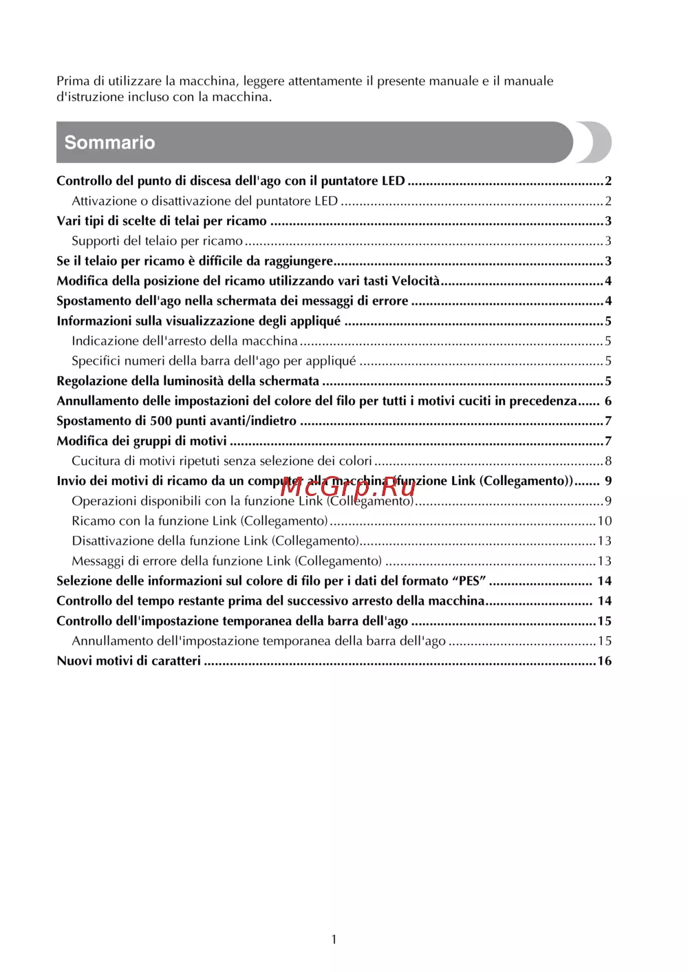 Invio dei motivi di ricamo da un computer alla macchina (funzione Link (Collegamento))....... 9
