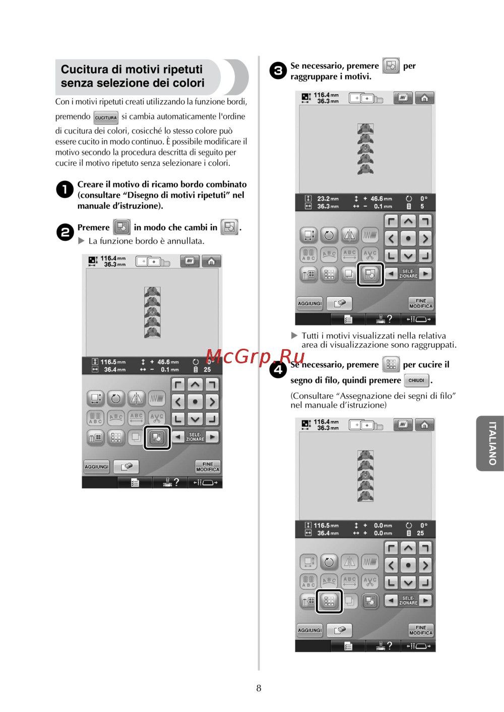Brother PR 655E ENTREPRENEUR (PR655E) — guida alla Cucitura di Motivi Ripetuti senza Selezione Colori [81/148]