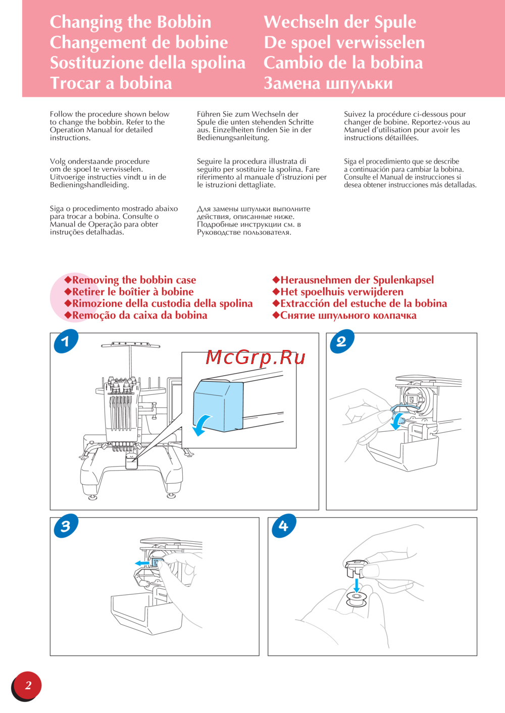 ◆Remoção da caixa da bobina ◆Снятие шпульного колпачка