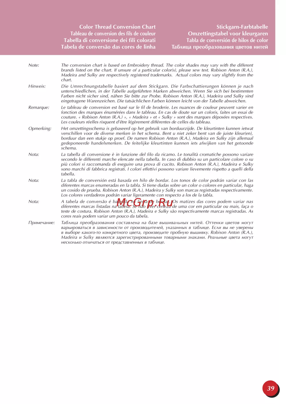 - Color thread conversion chart stickgarn farbtabelle p.39