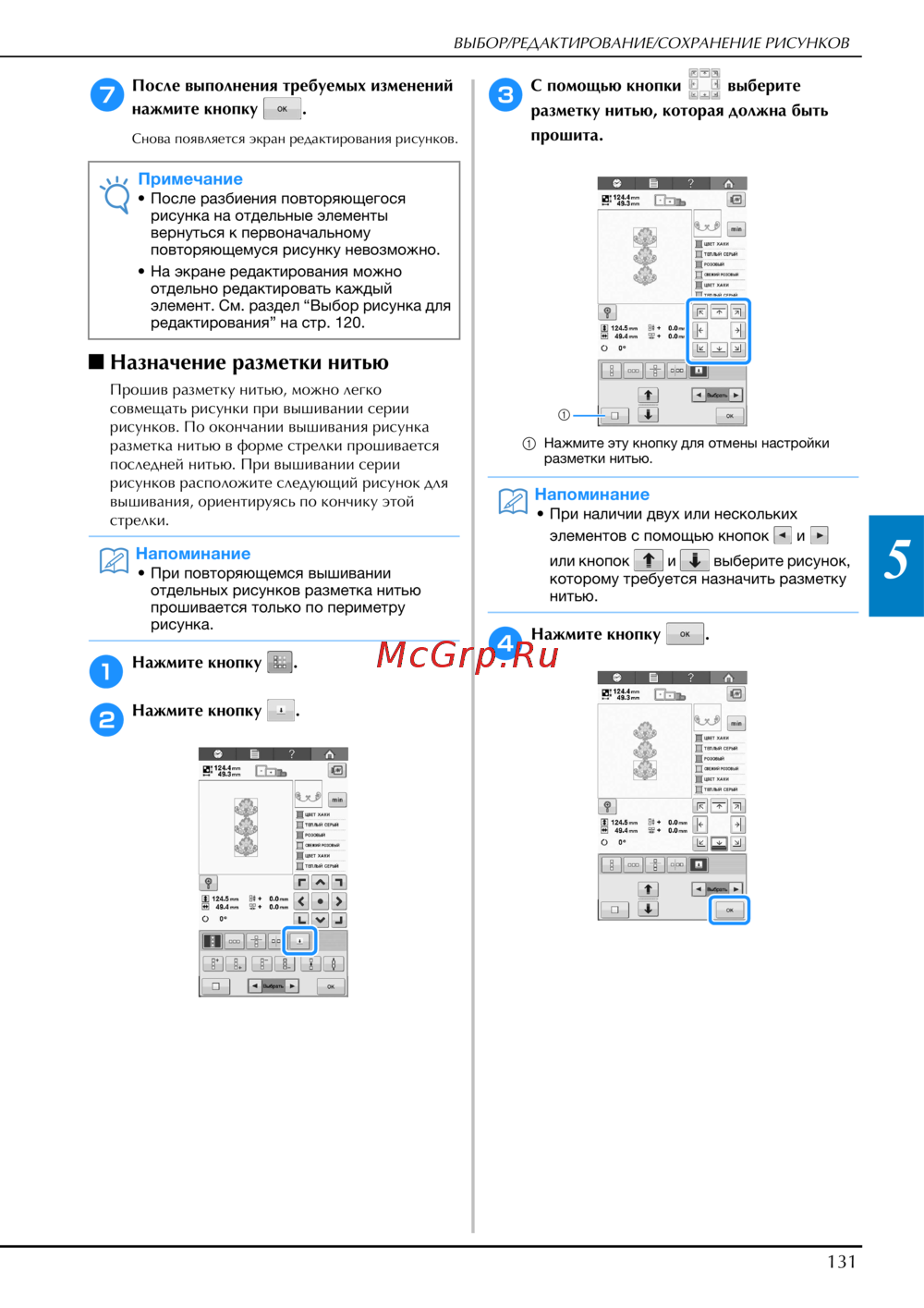 - Эта глава содержит описание способов выполнения различных операций вышивания создания привлекательных вышивок а также подробную информацию об обслуживании машины и корректирующих действиях которые должны предприниматься при возникновении различных проблем p.155