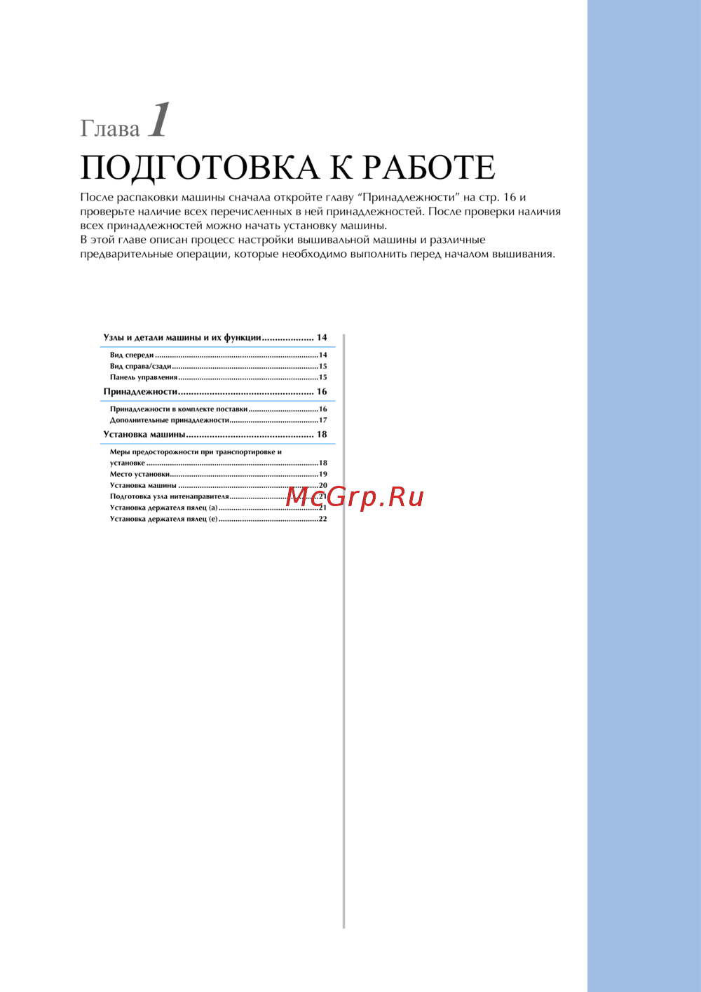 - Эта глава содержит описание способов выполнения различных операций вышивания создания привлекательных вышивок а также подробную информацию об обслуживании машины и корректирующих действиях которые должны предприниматься при возникновении различных проблем p.155