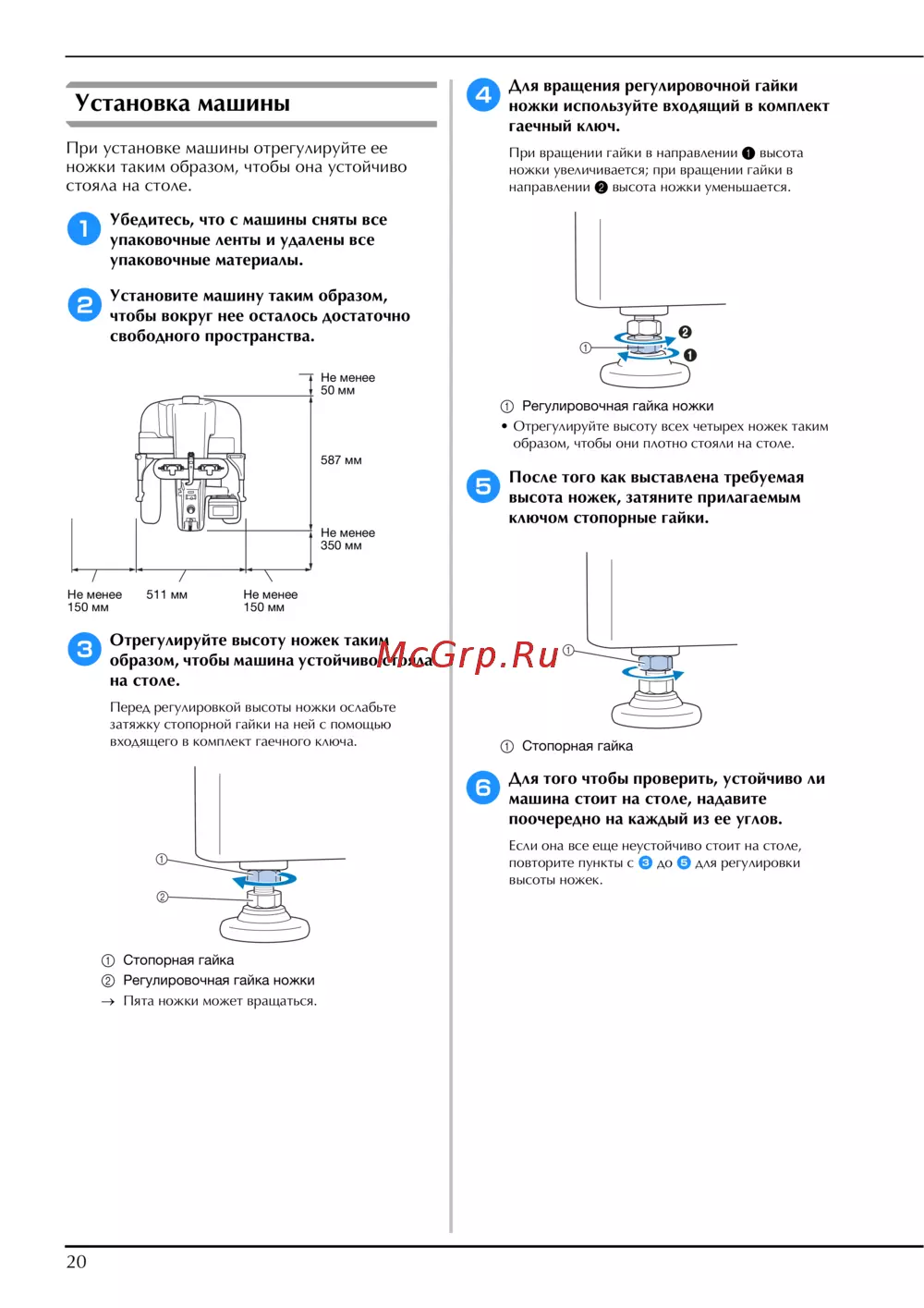 Brother VR — правильная установка и регулировка высоты машины на столе [22/192]