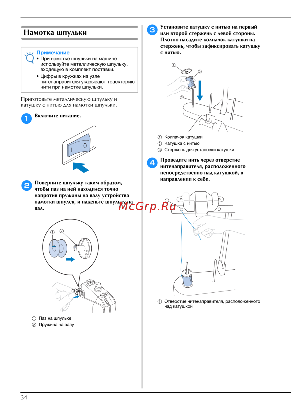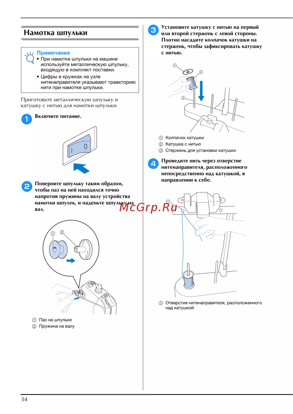 намотки шпулек, и наденьте шпульку на