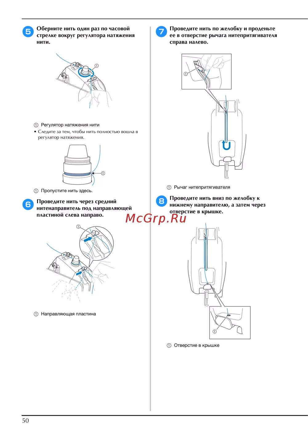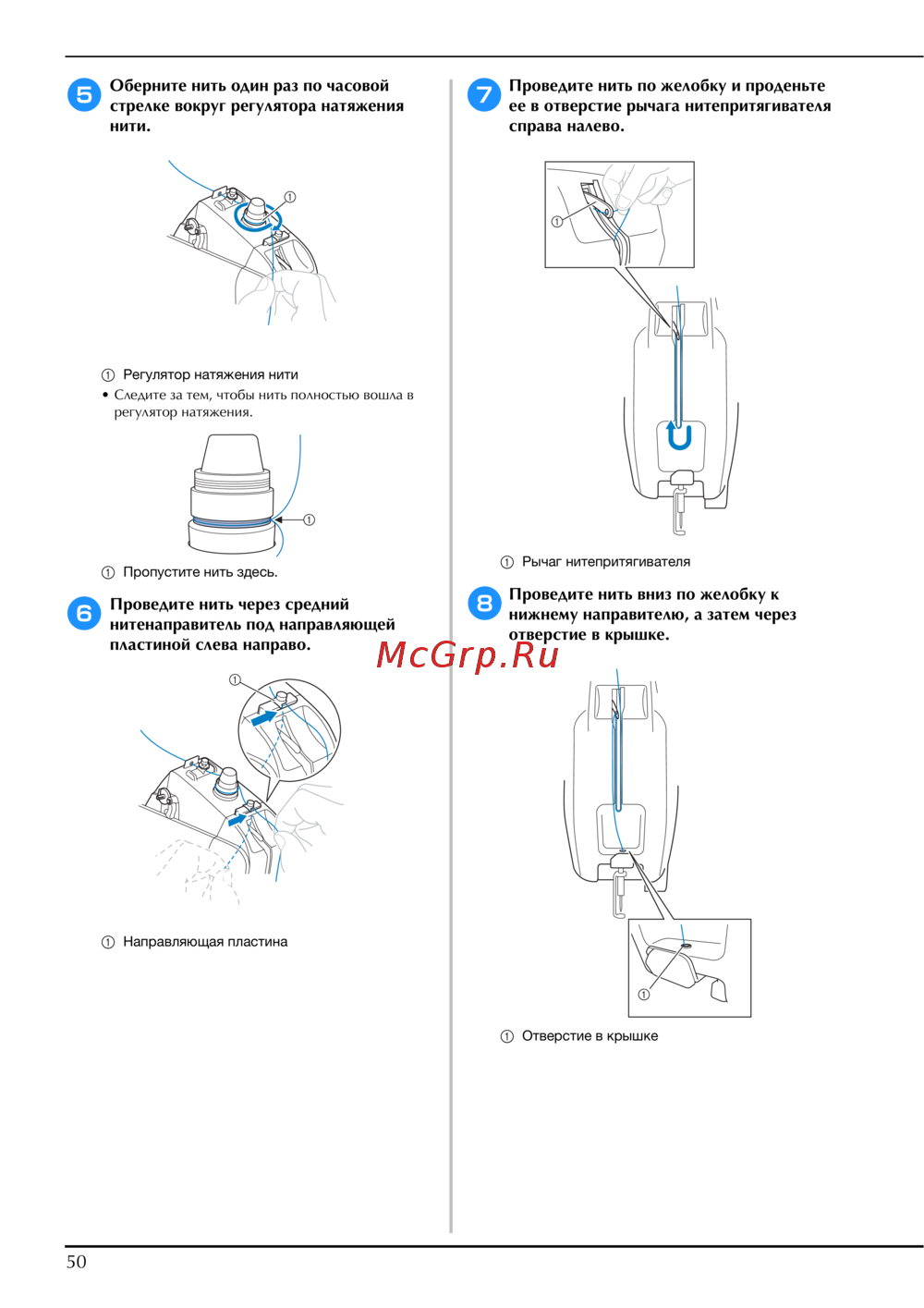 - Возможность установки четырех катушек с нитью для вышивания p.9