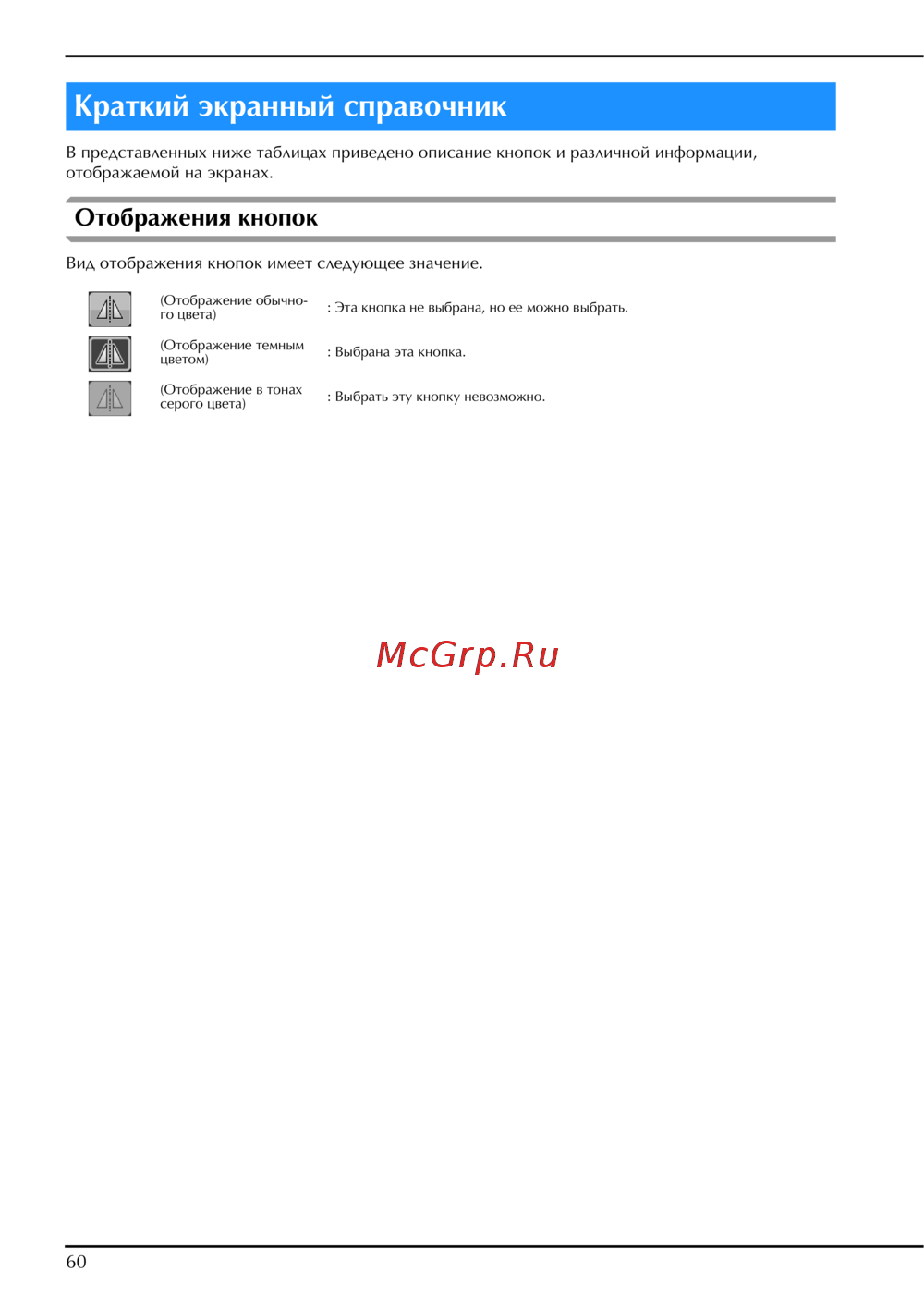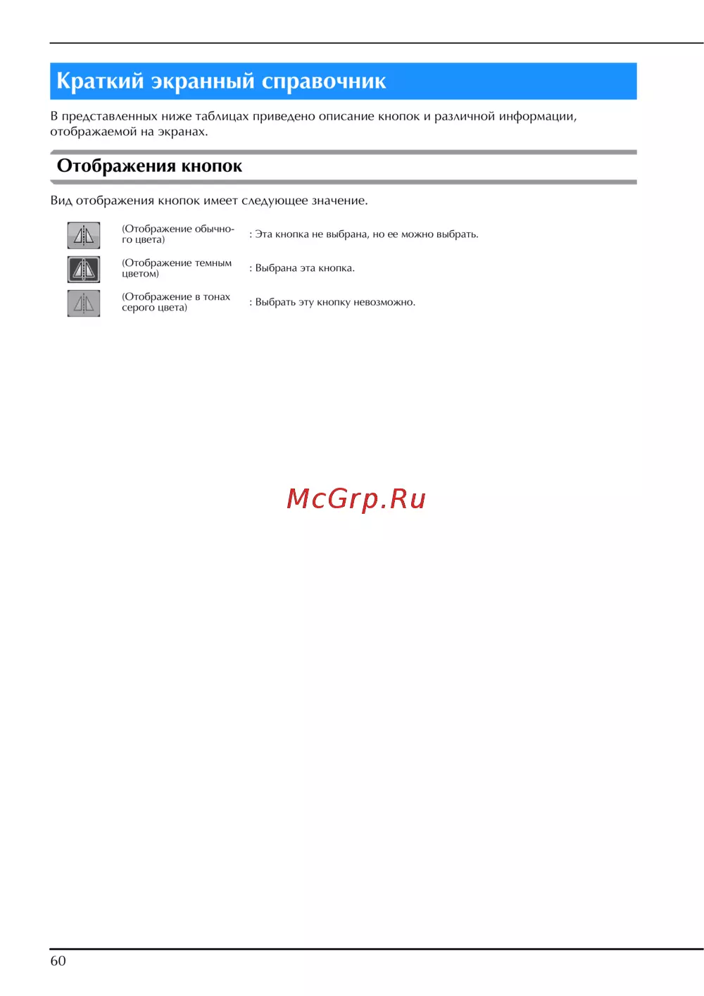 Вид отображения кнопок имеет следующее значение.
