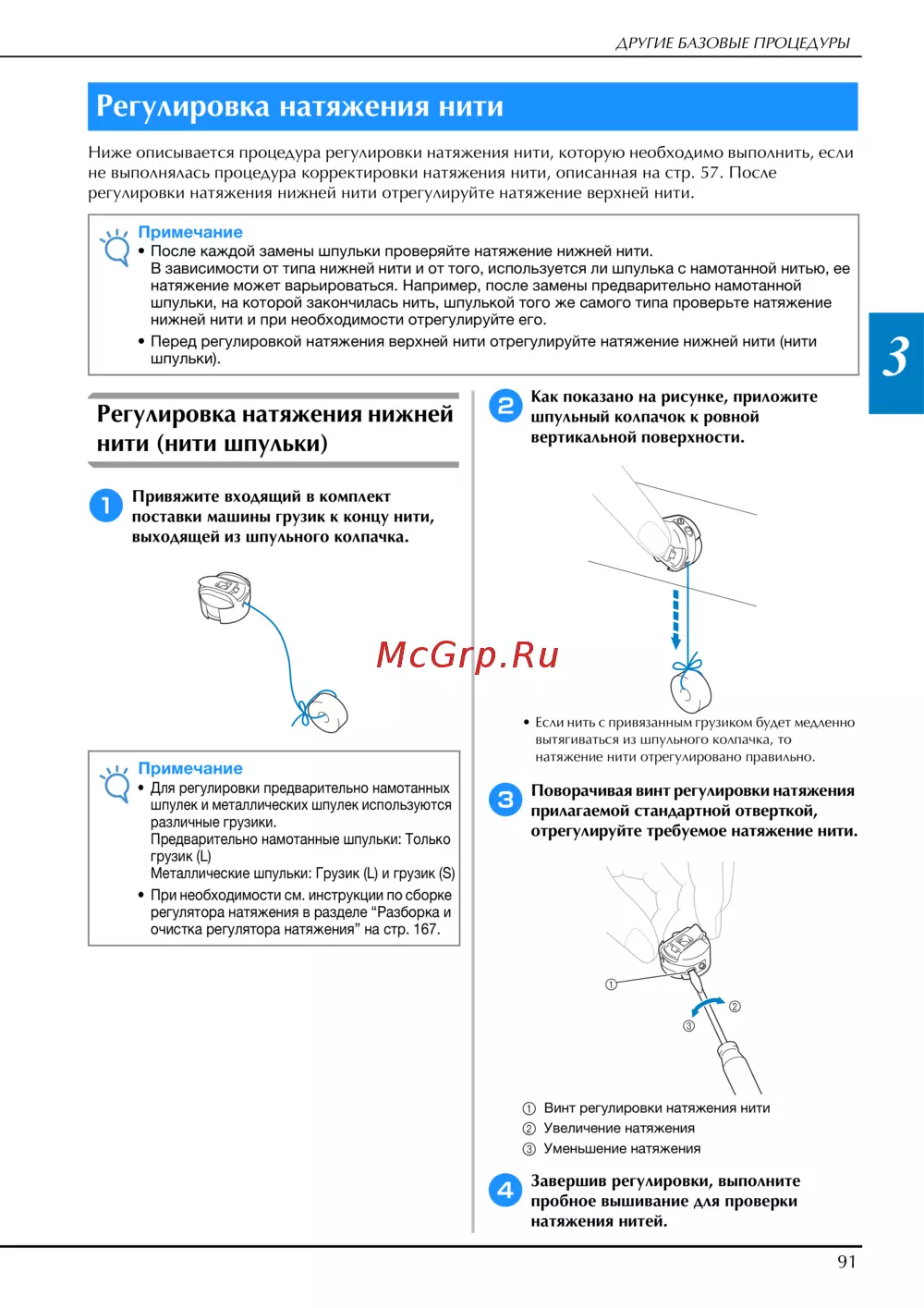 регулировки натяжения нижней нити отрегулируйте натяжение верхней нити.