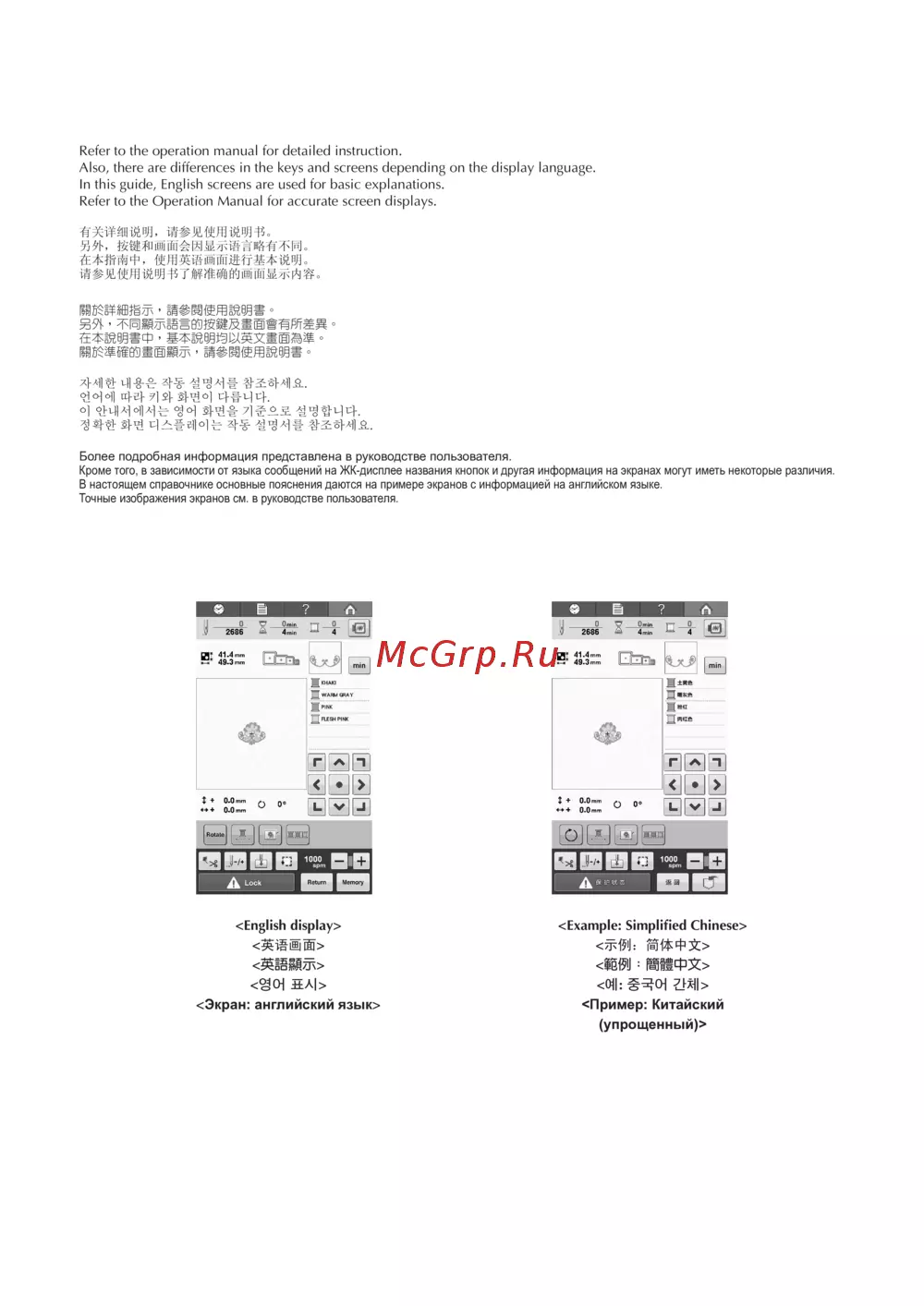 Узнайте о различиях в экранах и кнопках в зависимости от языка. В этом руководстве представлены основные пояснения с использованием английских экранов.