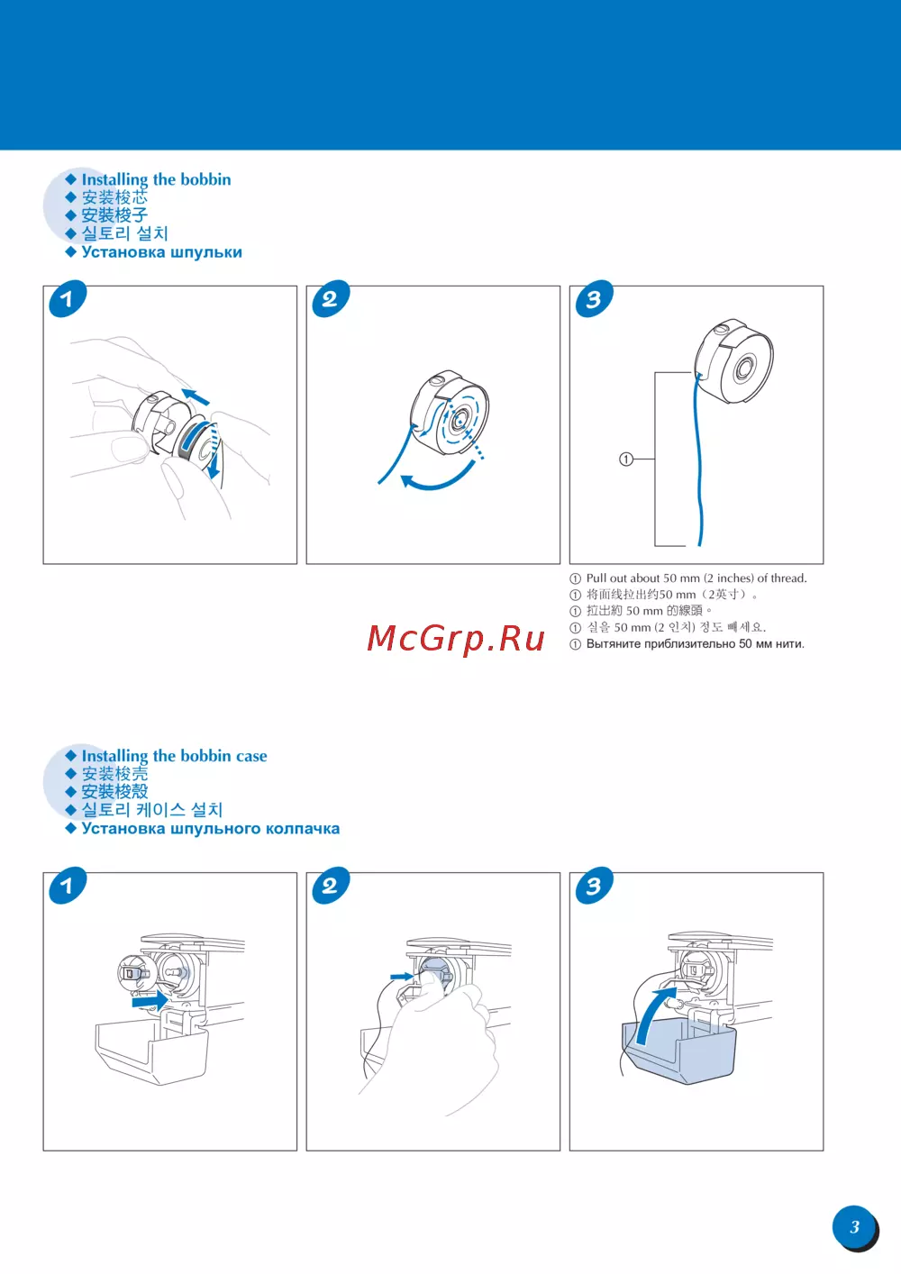- Changing the bobbin 更换梭芯 更換梭子 실토리 교체 замена шпульки p.4