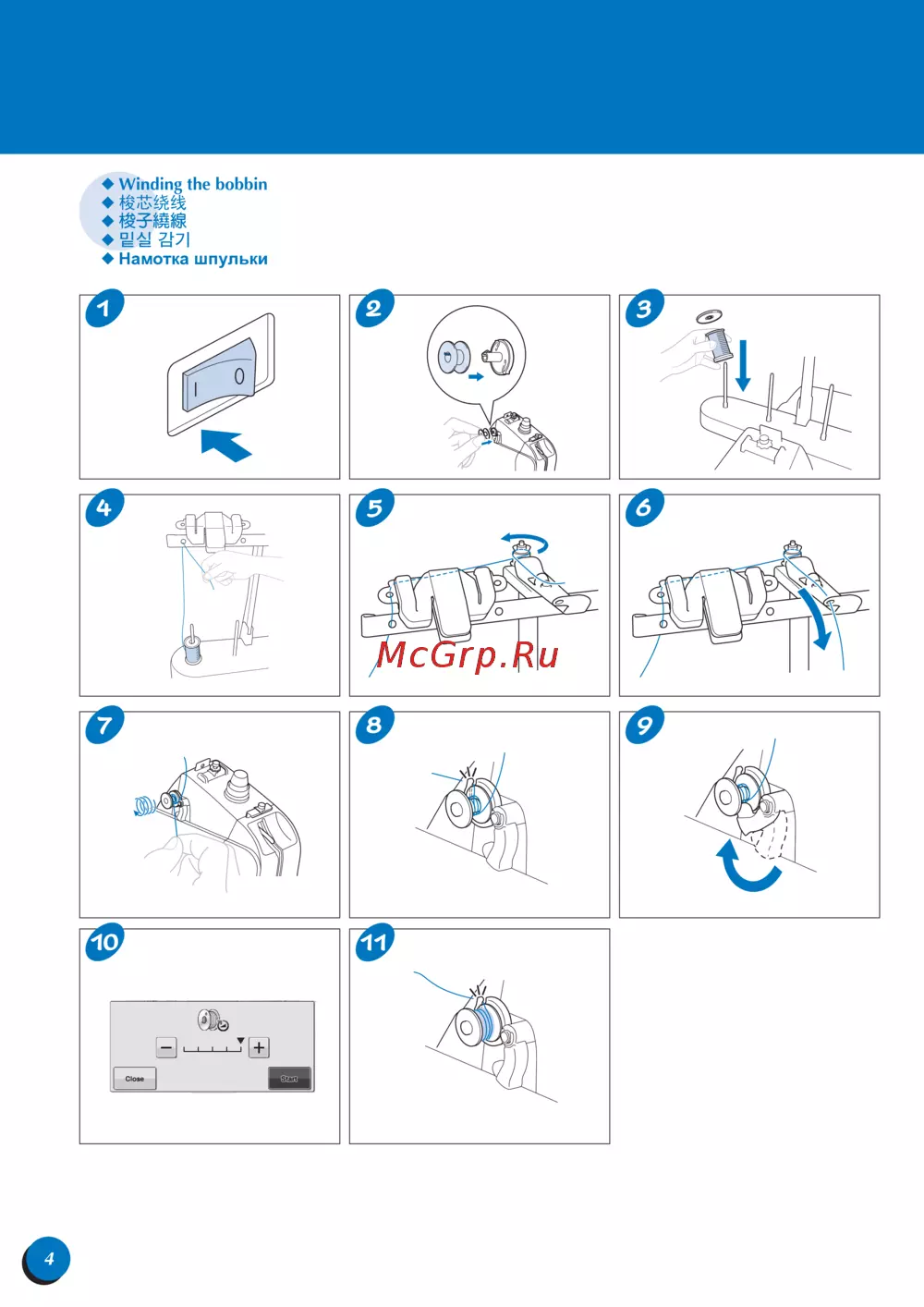 - Changing the bobbin 更换梭芯 更換梭子 실토리 교체 замена шпульки p.4