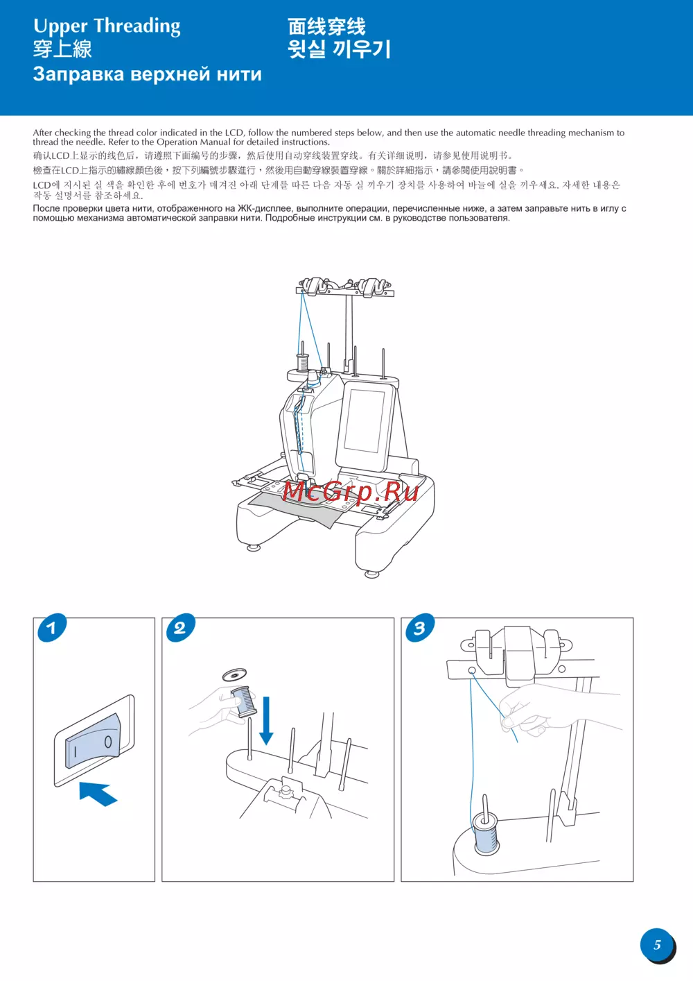 - Upper threading 面线穿线 穿上線 윗실 끼우기 заправка верхней нити p.7