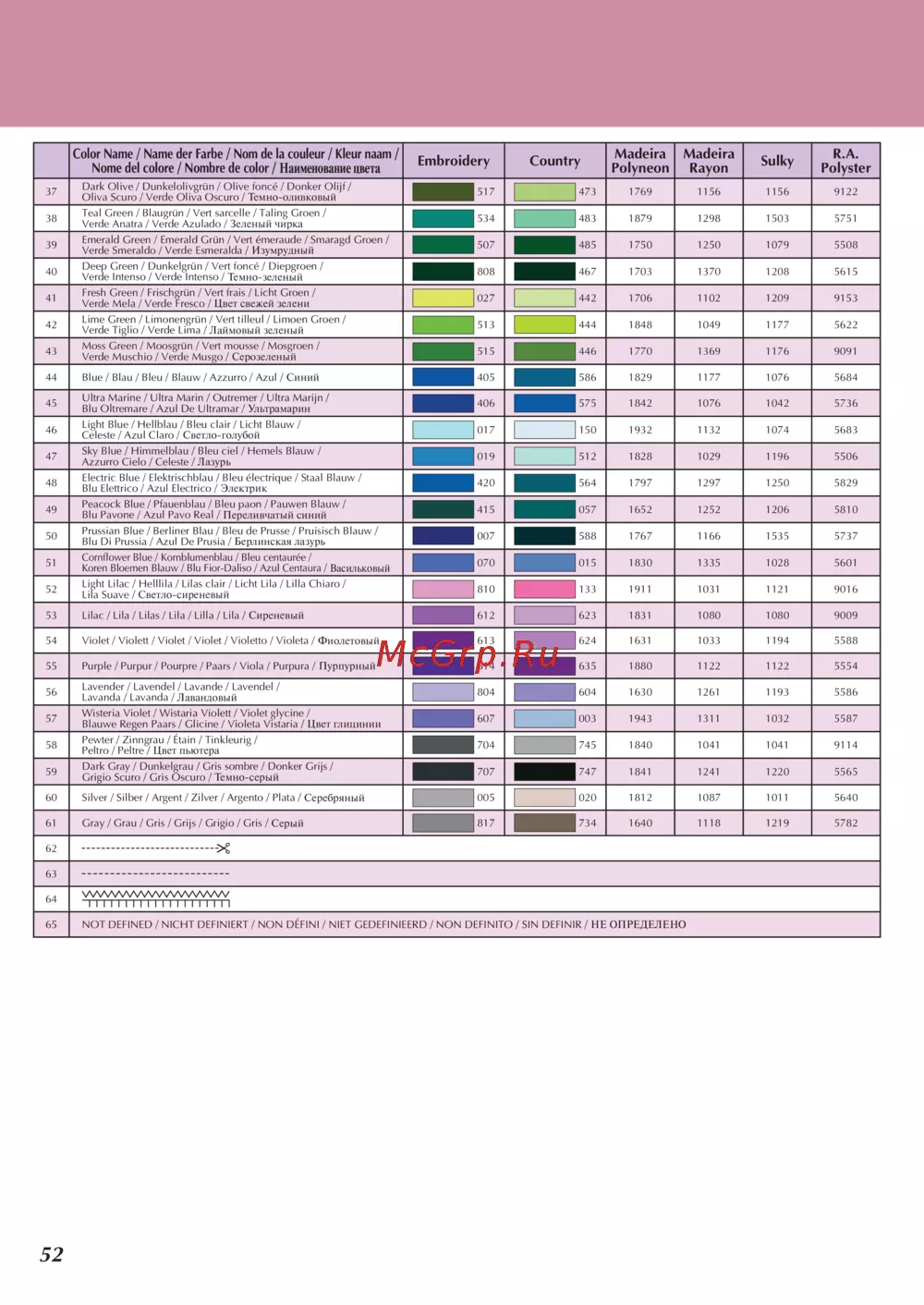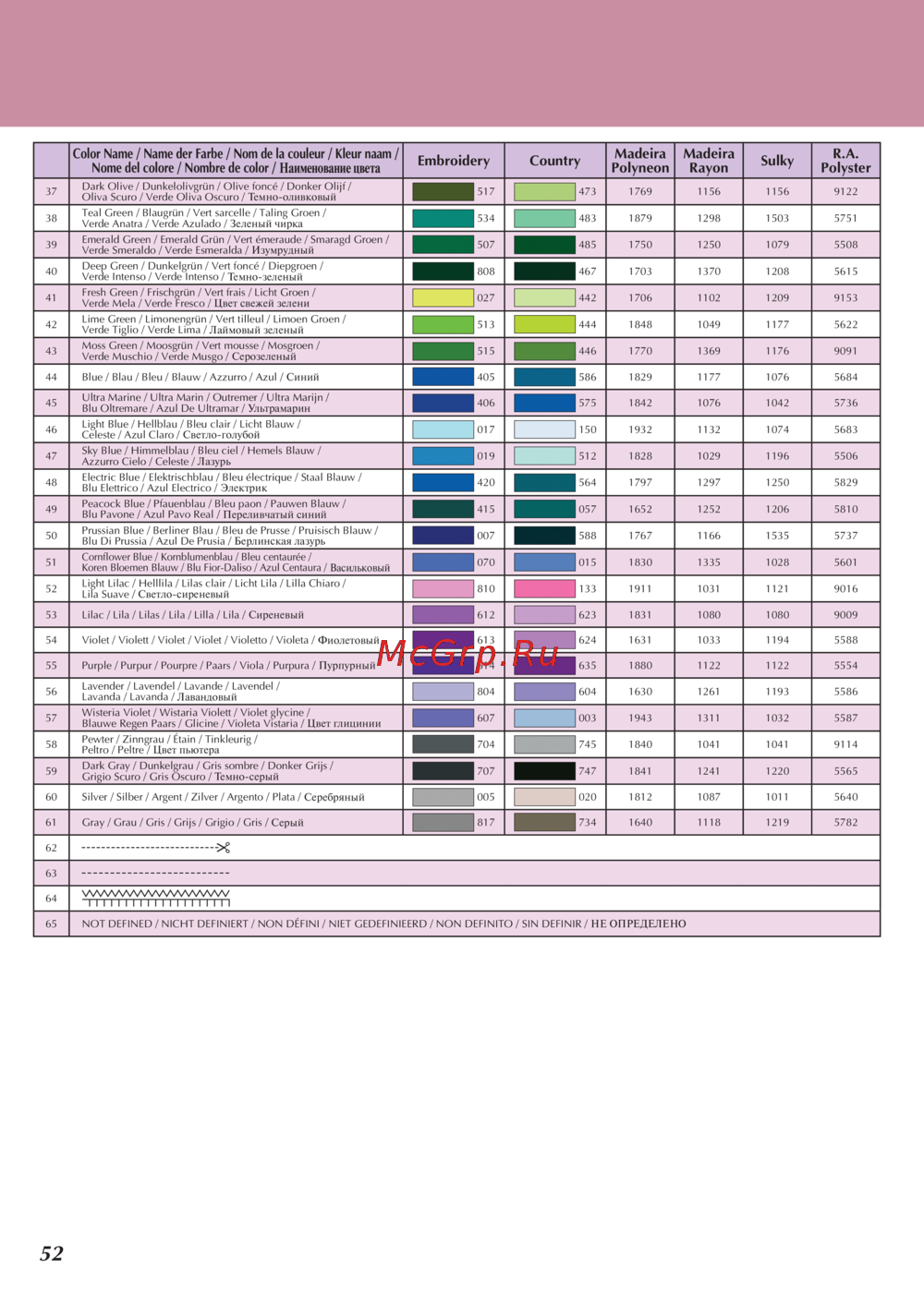 - Color thread conversion chart tableau de conversion des fils de couleur tabella di conversione dei fili colorati таблица преобразования цветов нитей p.55