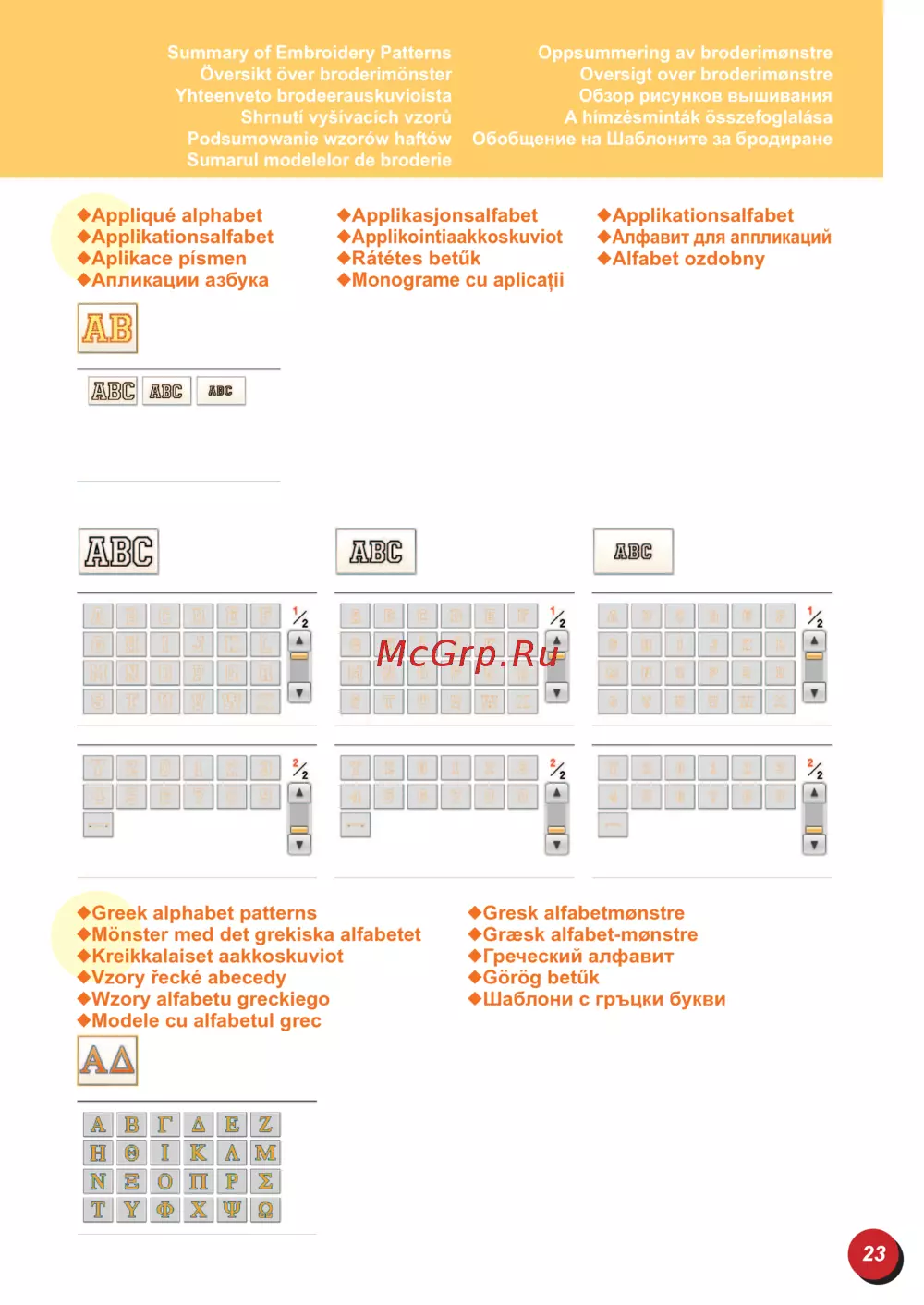 - Summary of embroidery patterns översikt över broderimönster yhteenveto brodeerauskuvioista shrnutí vyšívacích vzorů podsumowanie wzorów haftów sumarul modelelor de broderie p.12