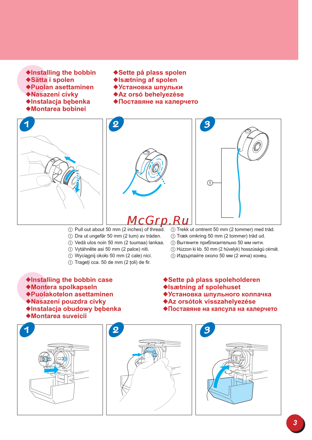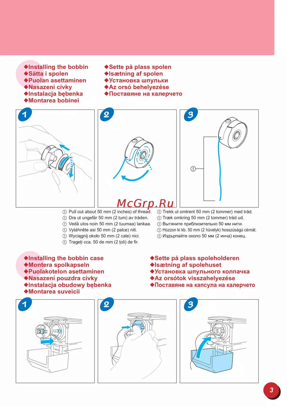 - Upper threading trä övertråden ylälangan langoittaminen horní vedení niti nawlekanie górnej nici înfilarea firului superior p.6