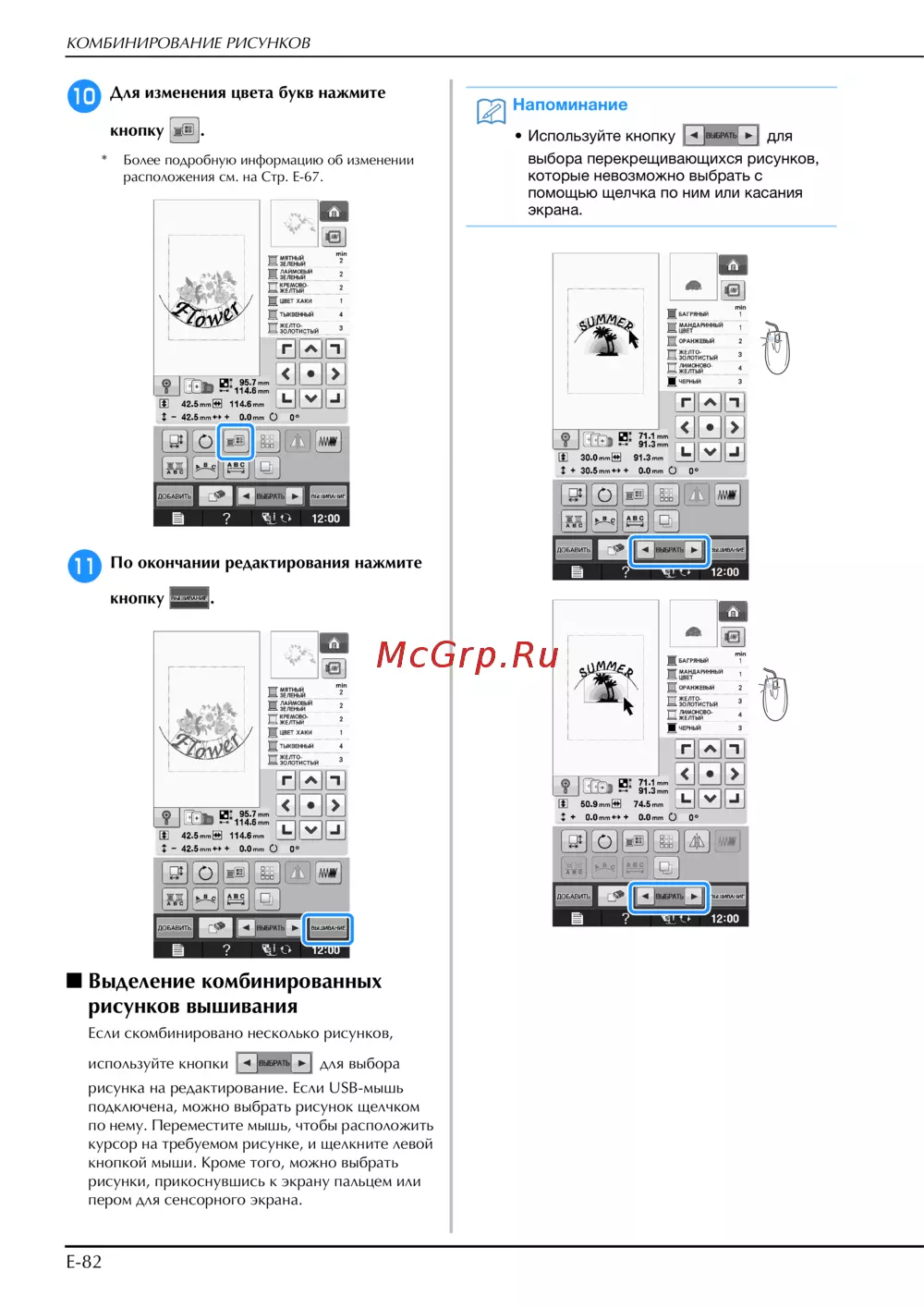 - Использование сенсорных функций в режиме вышивание и редактирование вышивки 58 p.8
