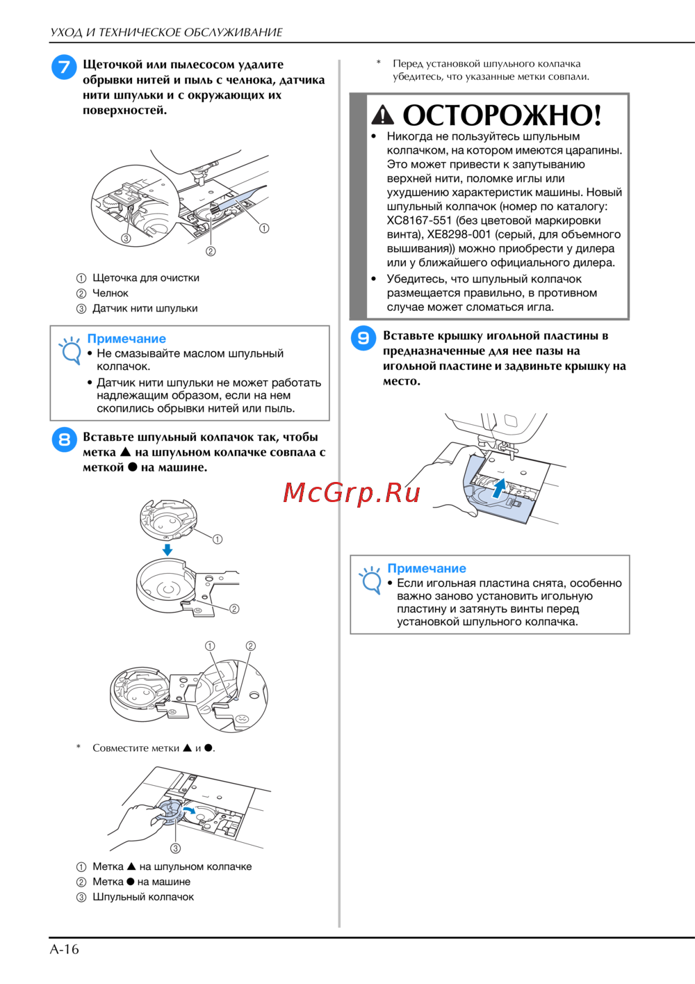 Узнайте, как правильно ухаживать за швейной машиной, очищать детали и устанавливать шпульный колпачок для предотвращения поломок и улучшения работы.