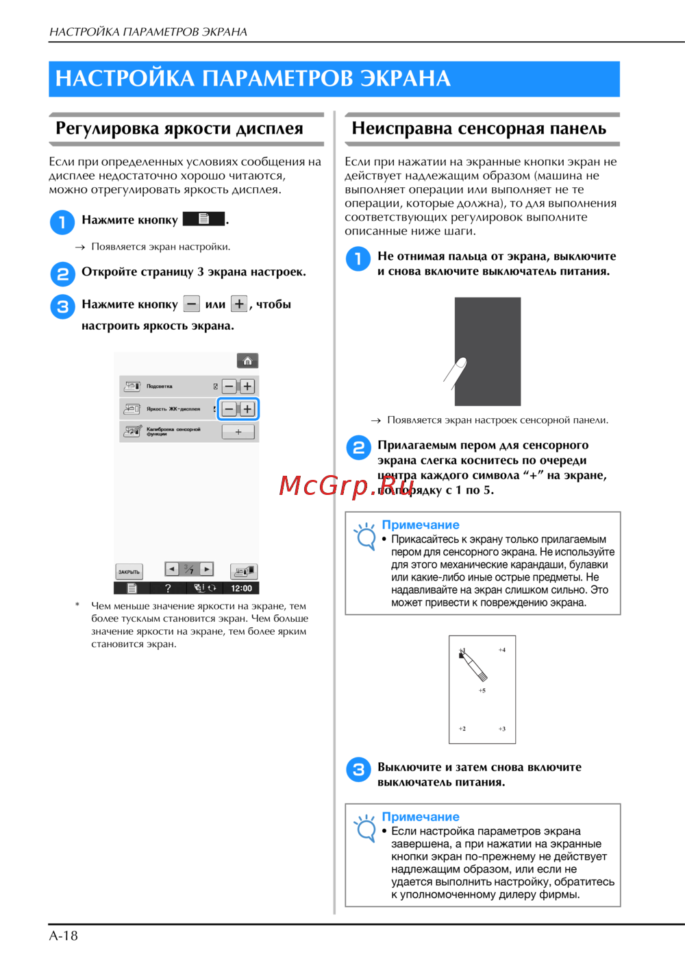Brother INNOV-'IS NV-V3 — настройка параметров экрана: яркость и сенсорная панель [168/180]