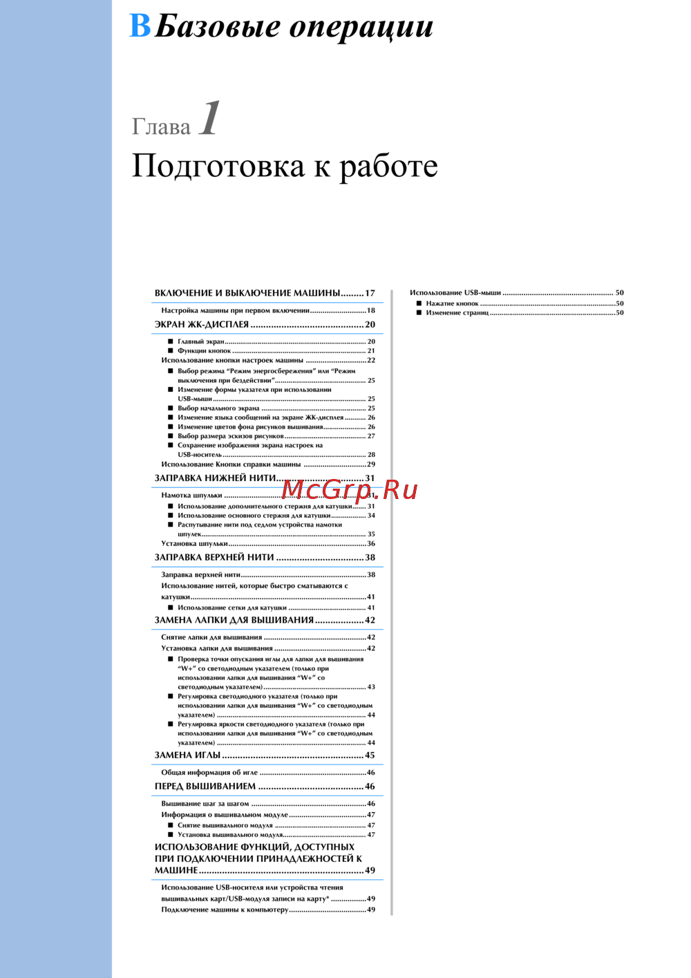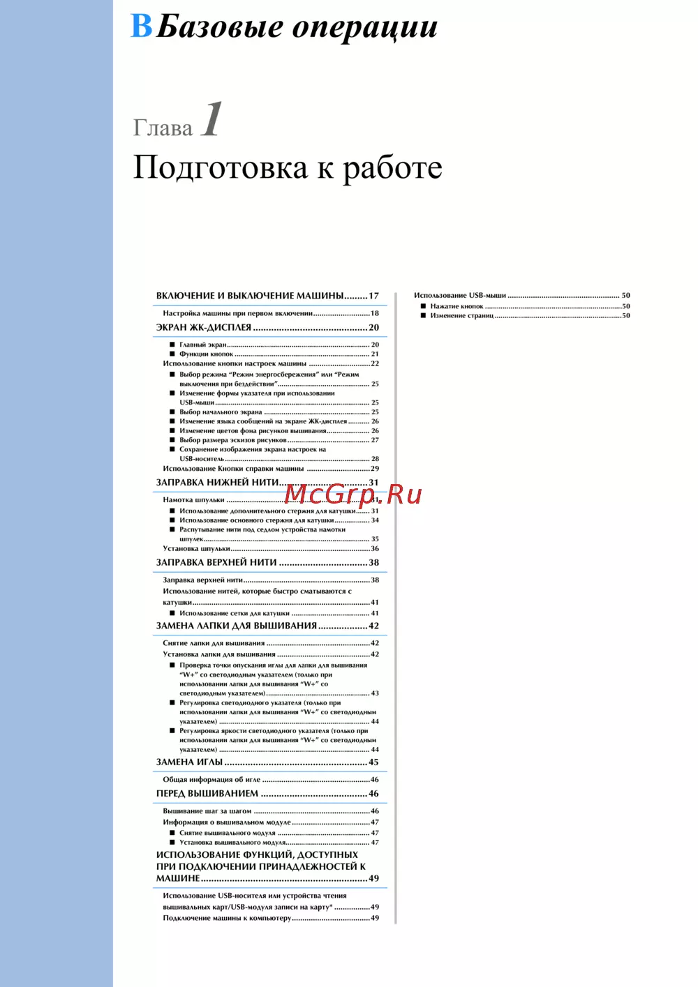 - Использование функций доступных при подключении принадлежностей к машине 49 p.8