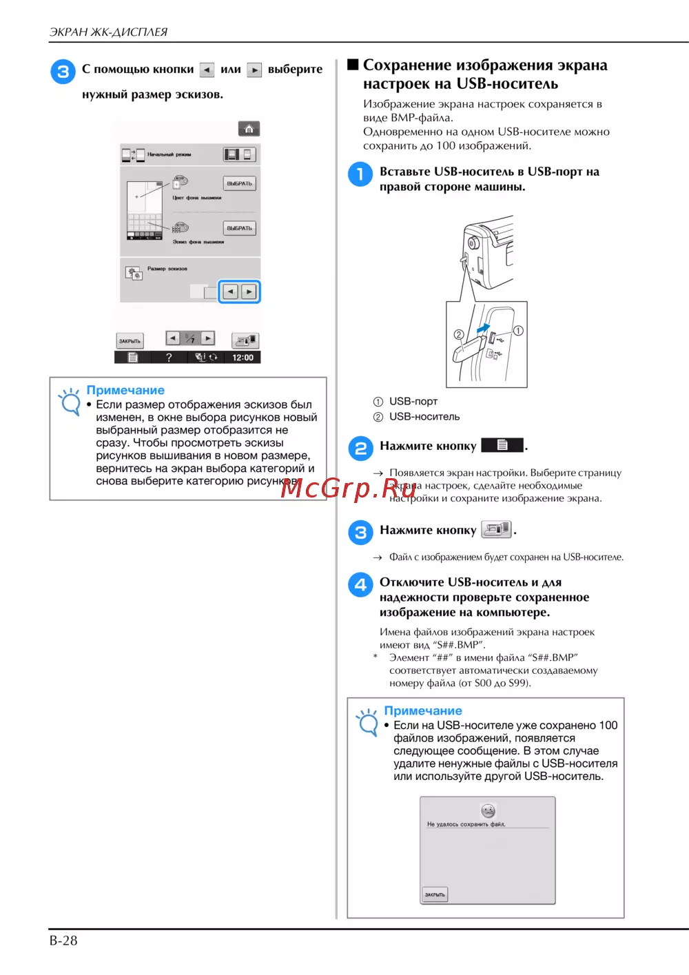 Brother INNOV-'IS NV-V3 — как сохранить изображения экрана настроек на USB-носитель [30/180]