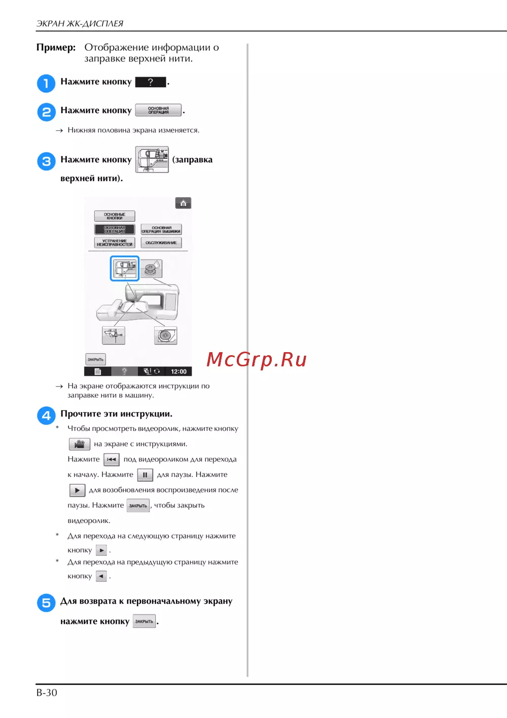 Узнайте, как правильно заправить верхнюю нить с помощью ЖК-дисплея. Следуйте простым шагам и смотрите видеоролики для наглядного обучения.