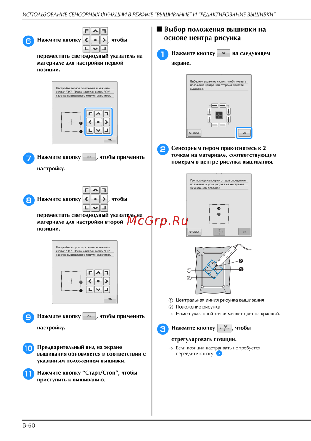 - Использование сенсорных функций в режиме вышивание и редактирование вышивки 58 p.8