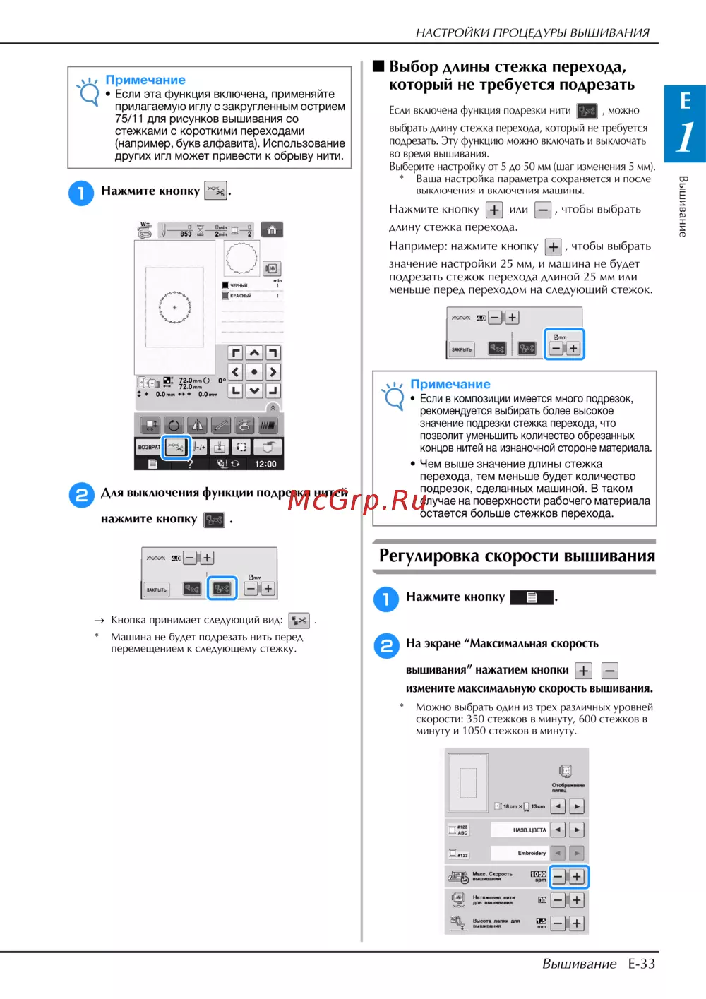 - Использование сенсорных функций в режиме вышивание и редактирование вышивки 58 p.8