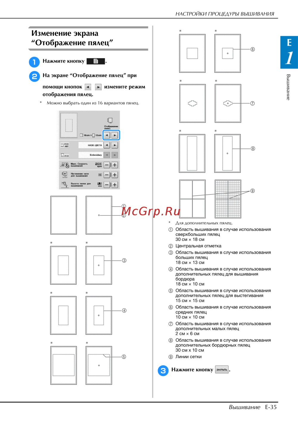 - Просмотр данных на экране вышивания 9 подготовка ткани 11 p.8