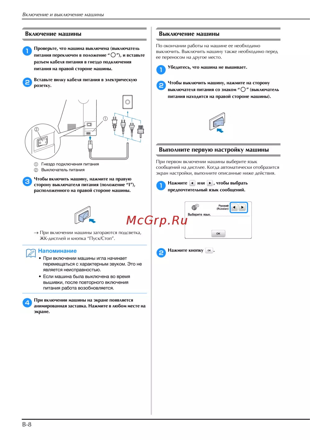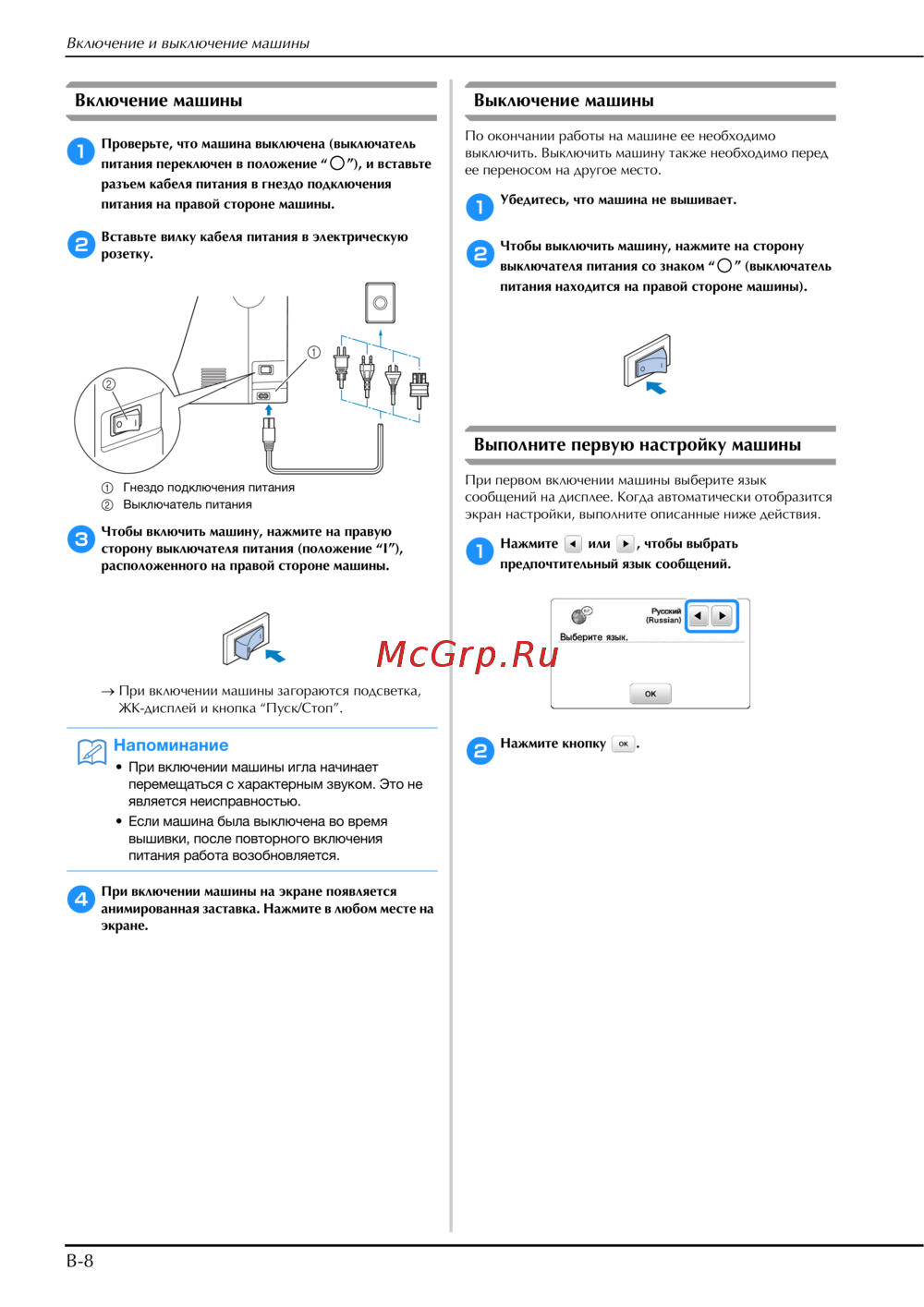 - Включение и выключение машины 7 p.8