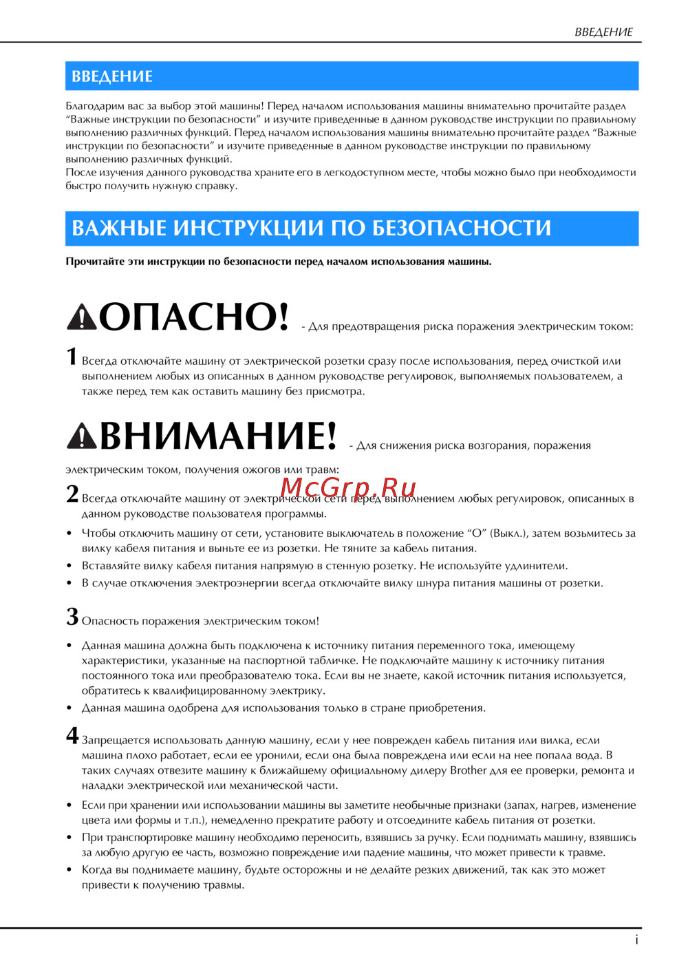 - Введение i важные инструкции по безопасности i товарные знаки iv возможности данной машины v p.8
