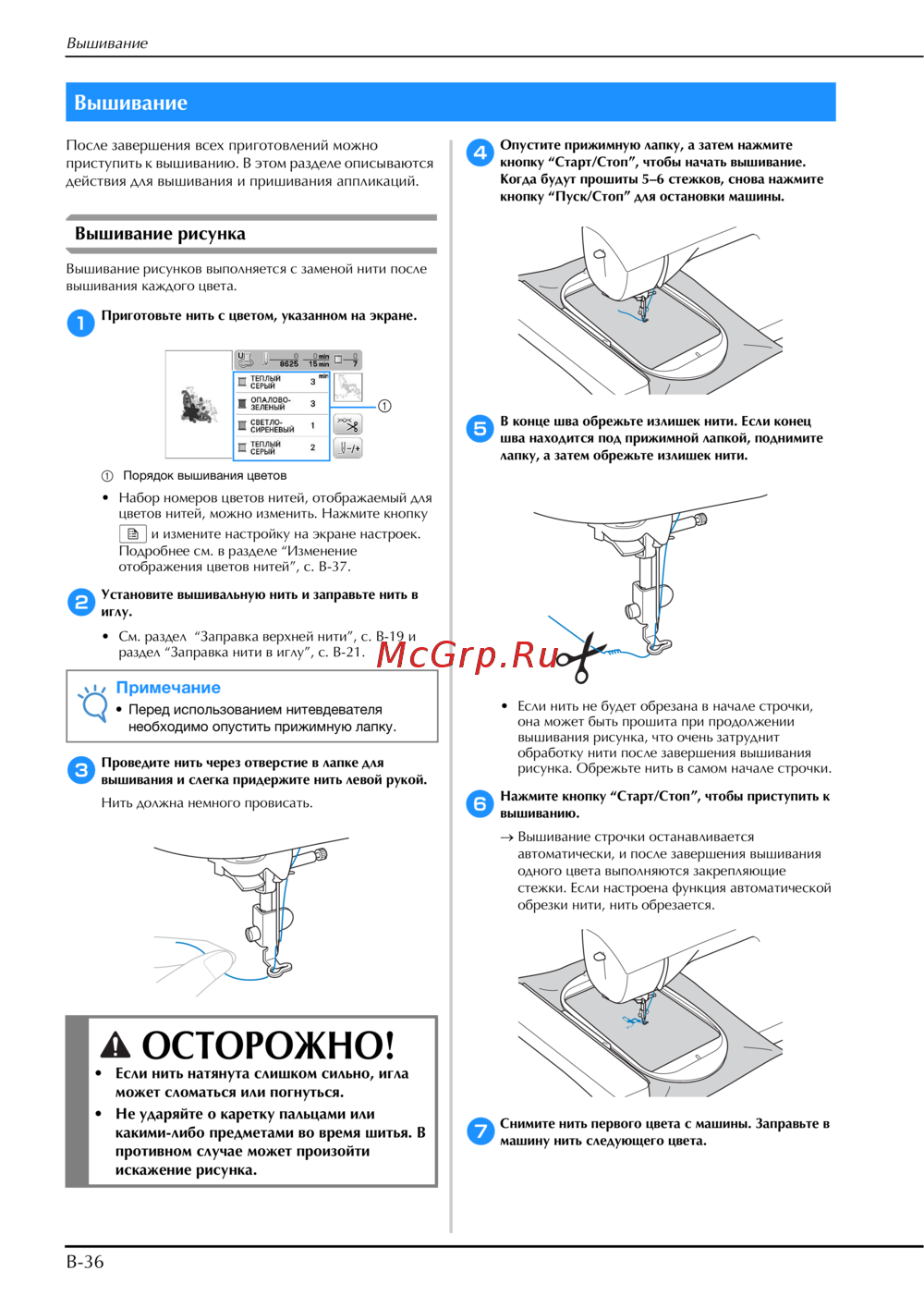 кнопку “Старт/Стоп”, чтобы начать вышивание.