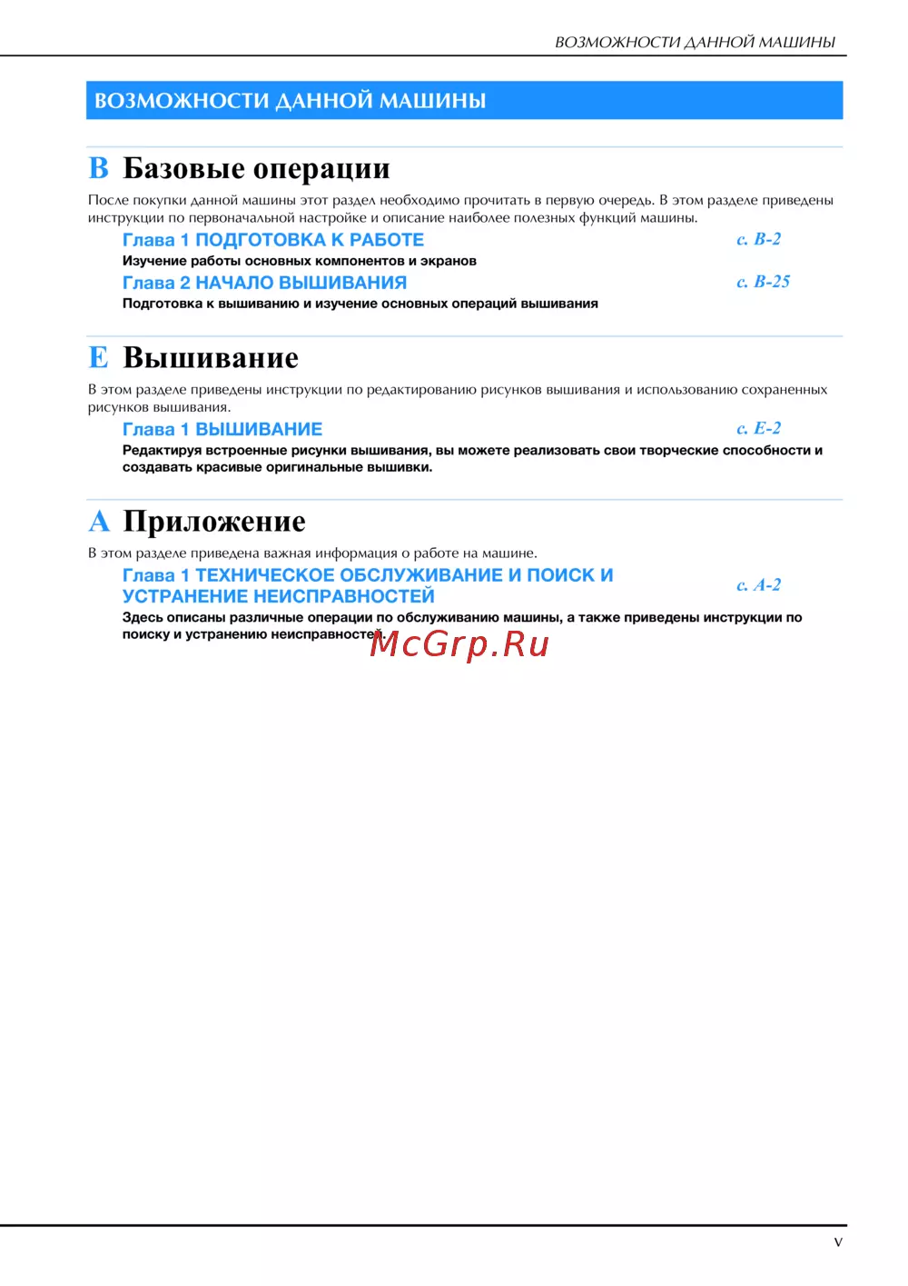- Введение i важные инструкции по безопасности i товарные знаки iv возможности данной машины v p.8