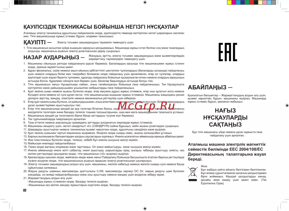 - Аталмыш машина электрлік магниттік сəйкестік бөлімінде еес 2004 108 ec директивасының талаптарына жауап береді p.4
