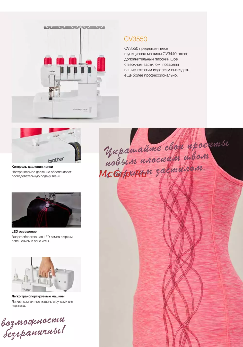 - Плоскошовные машины brother cv3440 и cv3550 предлагают функционал для высококачественного утонченного завершения работы над проектами простая система заправки нити делает шитье с использованием распошивального шва легким и приятным p.2
