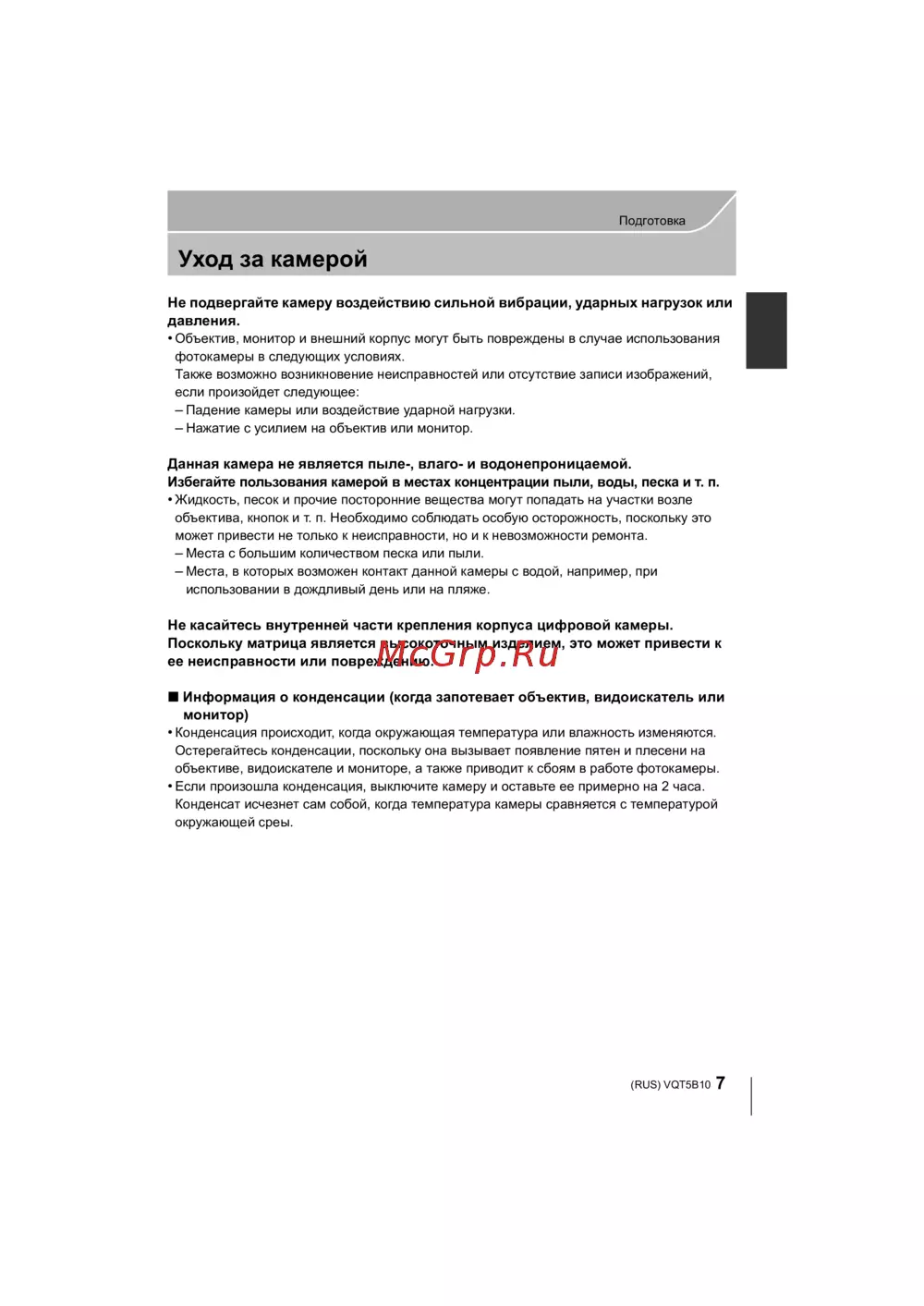 Panasonic DMC-GX7EE-K — правила ухода за камерой: советы по защите и обслуживанию [7/101]