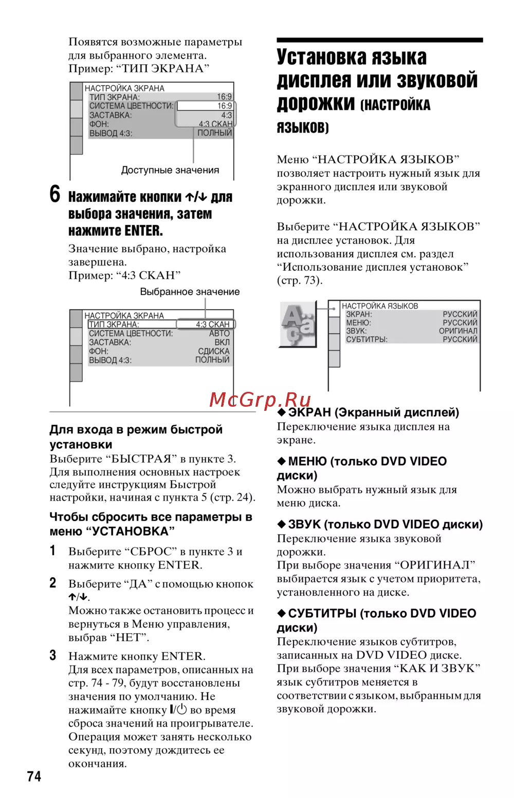 ![Sony DVP-NS32 [74/94] Настройка](/views2/1034303/page74/bg4a.png)
