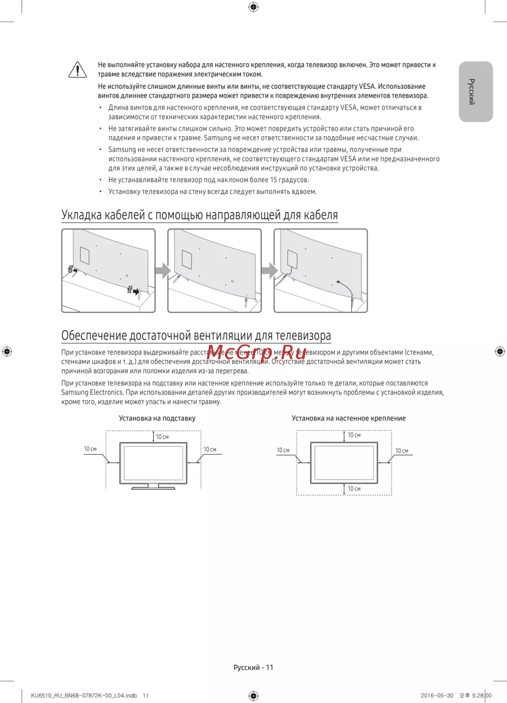 Samsung UE43KU6510U — правила установки настенного крепления для телевизора [11/60]