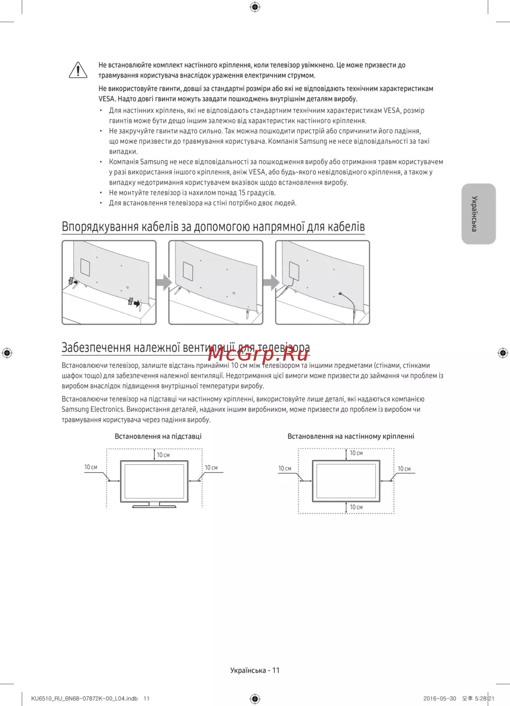 - Обеспечение достаточной вентиляции для телевизора p.11