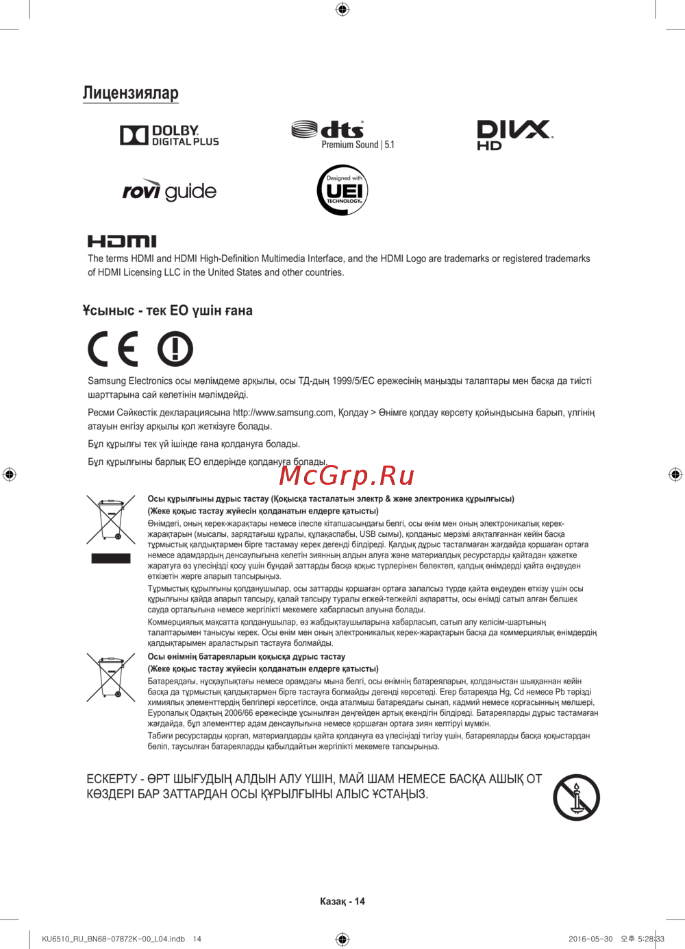 Samsung UE43KU6510U — лицензиялар мен экологиялық талаптар туралы ақпарат [58/60]