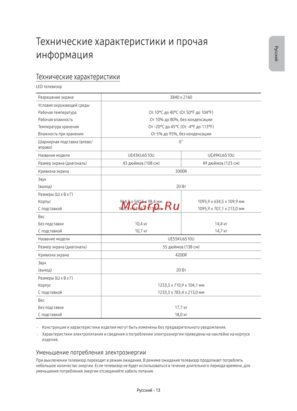 Samsung UE55KU6510U — технические характеристики LED телевизоров: разрешение, размеры и вес [13/60]