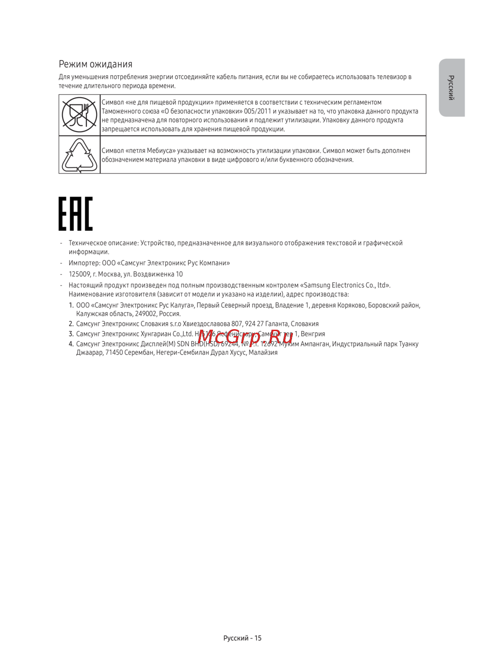 - Импортер: ООО «Самсунг Электроникс Рус Компани»