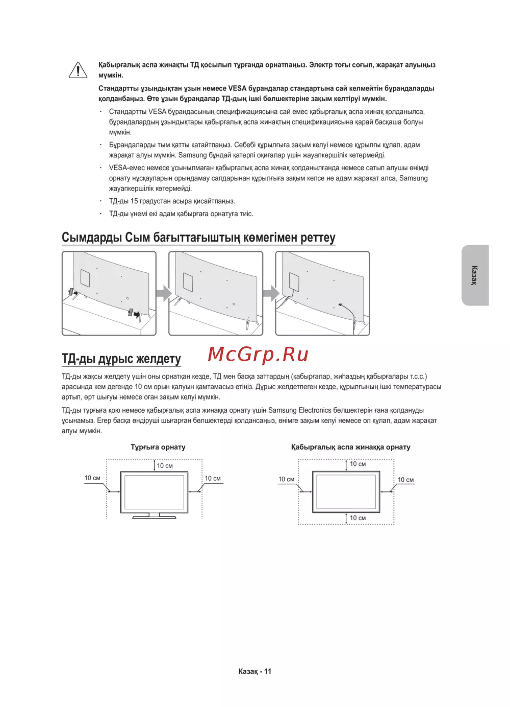 ТД-ды жақсы желдету үшін оны орнатқан кезде, ТД мен басқа заттардың (қабырғалар, жиһаздың қабырғалары т.с.с.)